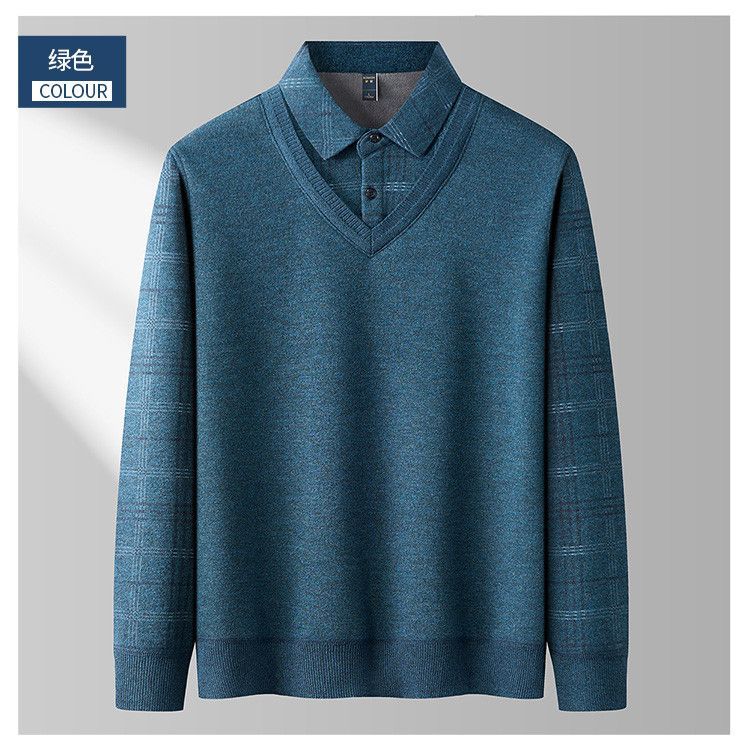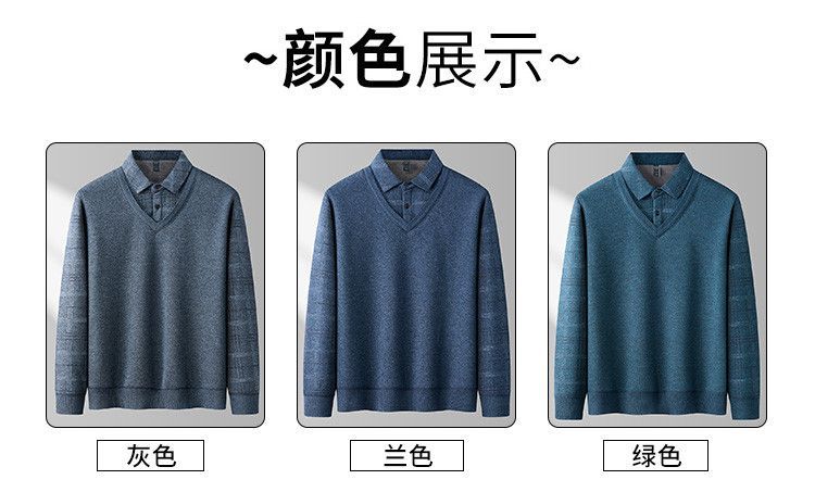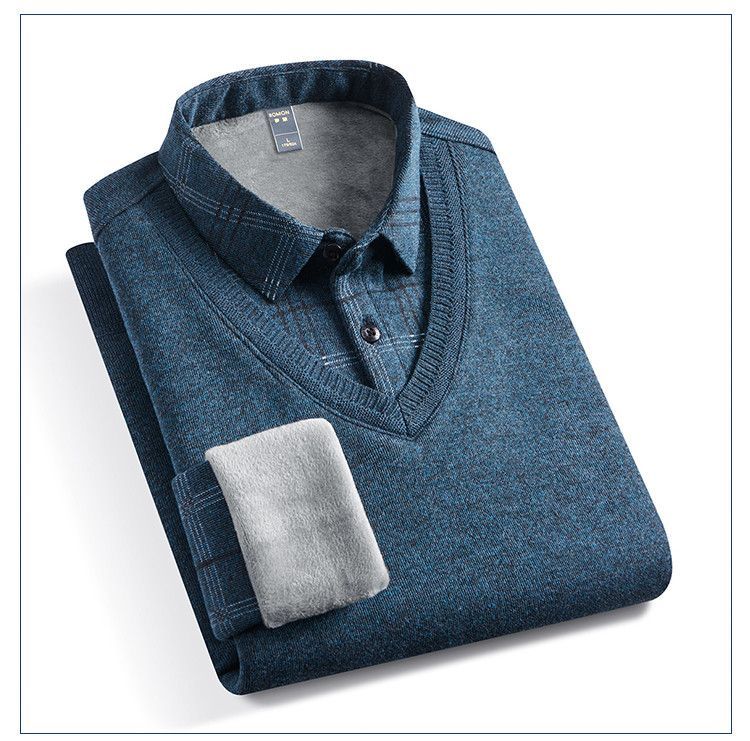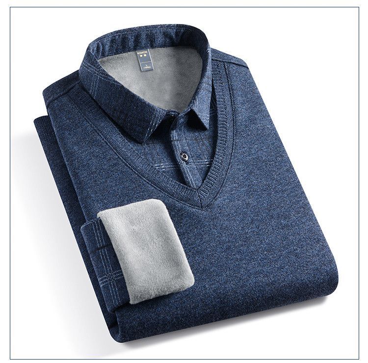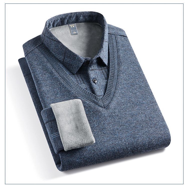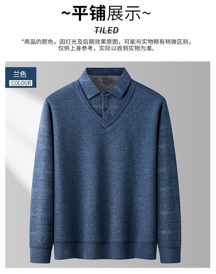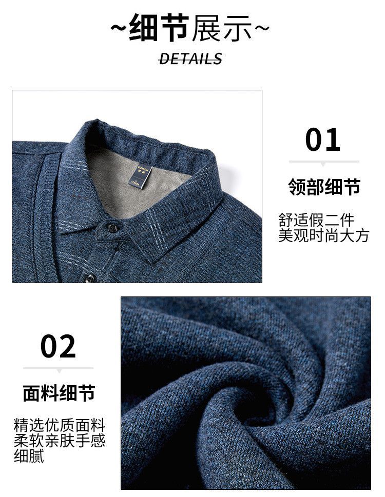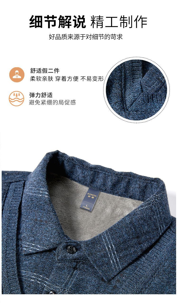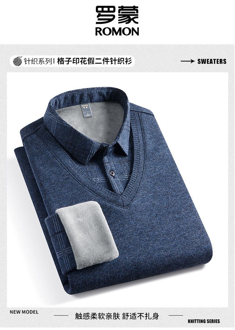 【加绒加厚假两件】罗蒙含棉假两件加绒衬衫 男长袖衬衣 男长袖加绒针织衫
