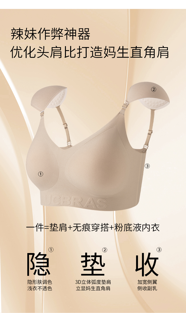 一秒穿出超模直角肩【粉底液直角肩隐形内衣】大胸显小 溜肩秒变“直角肩”,一件搞定“显瘦+气场”!隐形垫肩,弧度超自然!