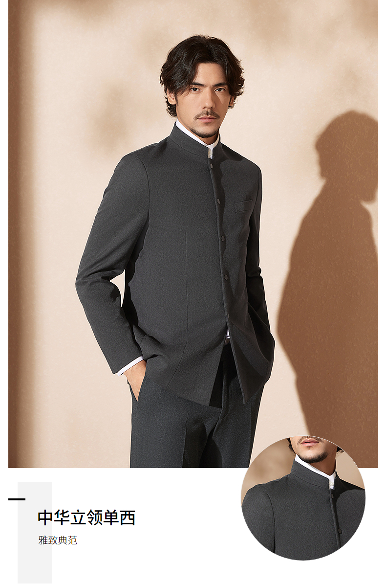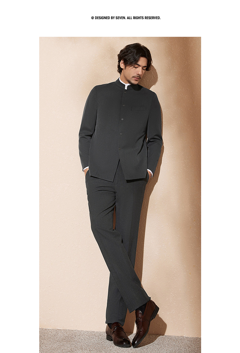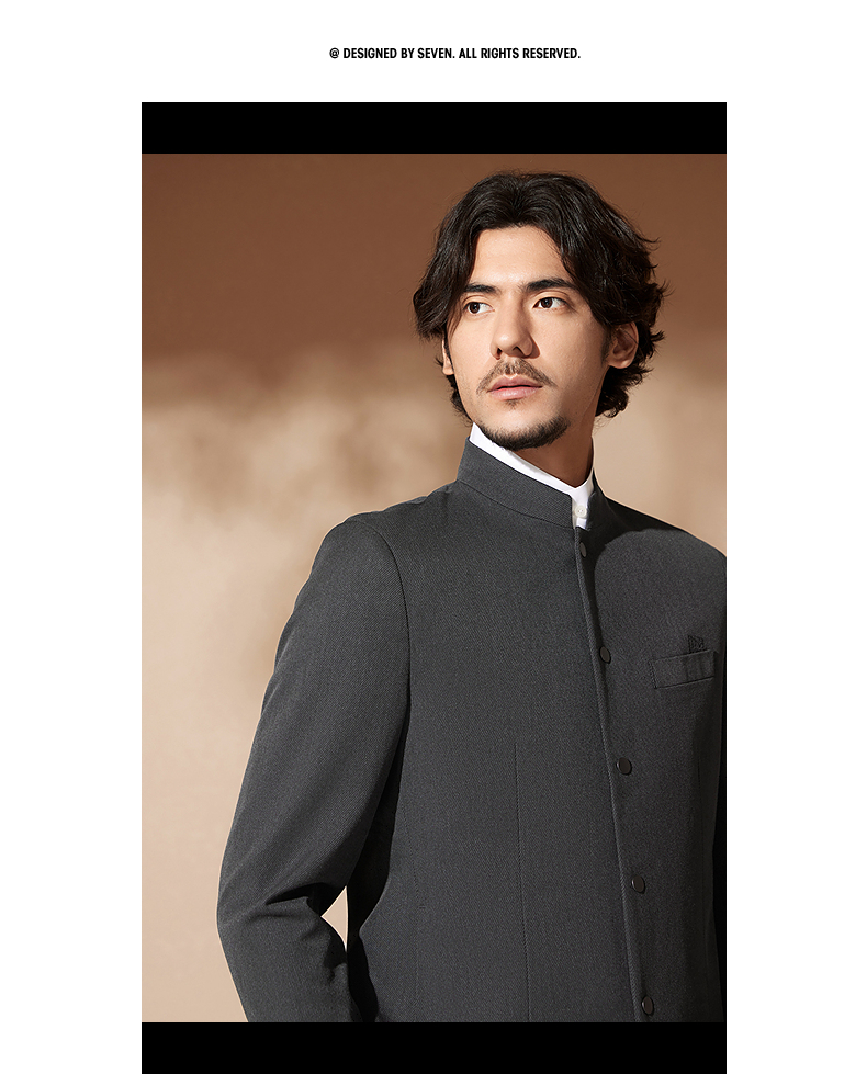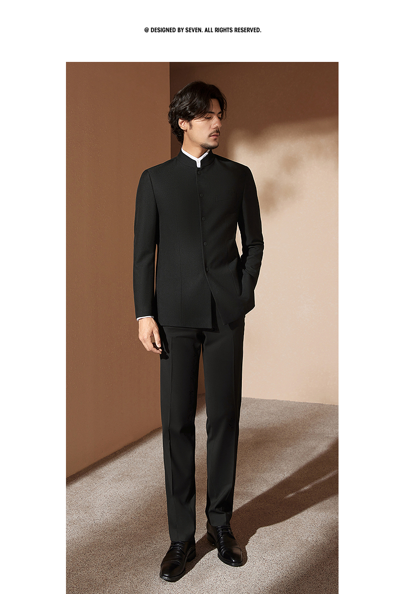 【中华立领】柒牌西服男士春秋款商务休闲正装斜纹肌理单西装外套 127C70550