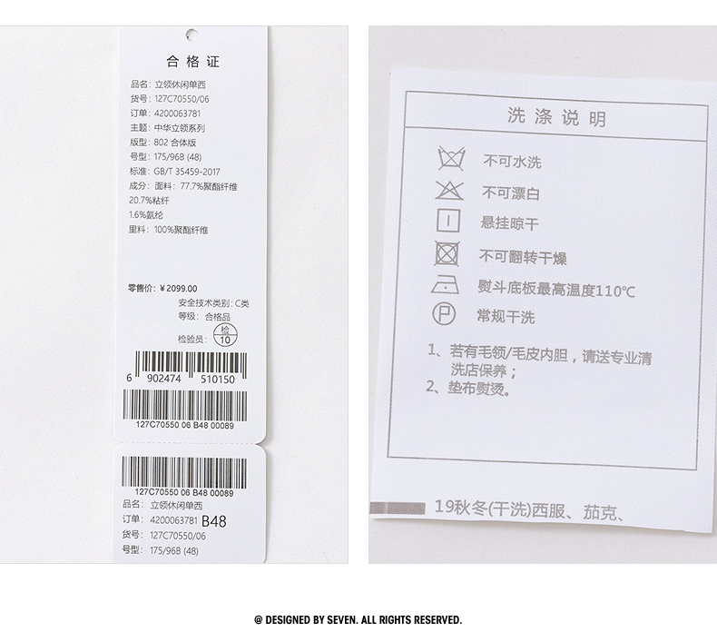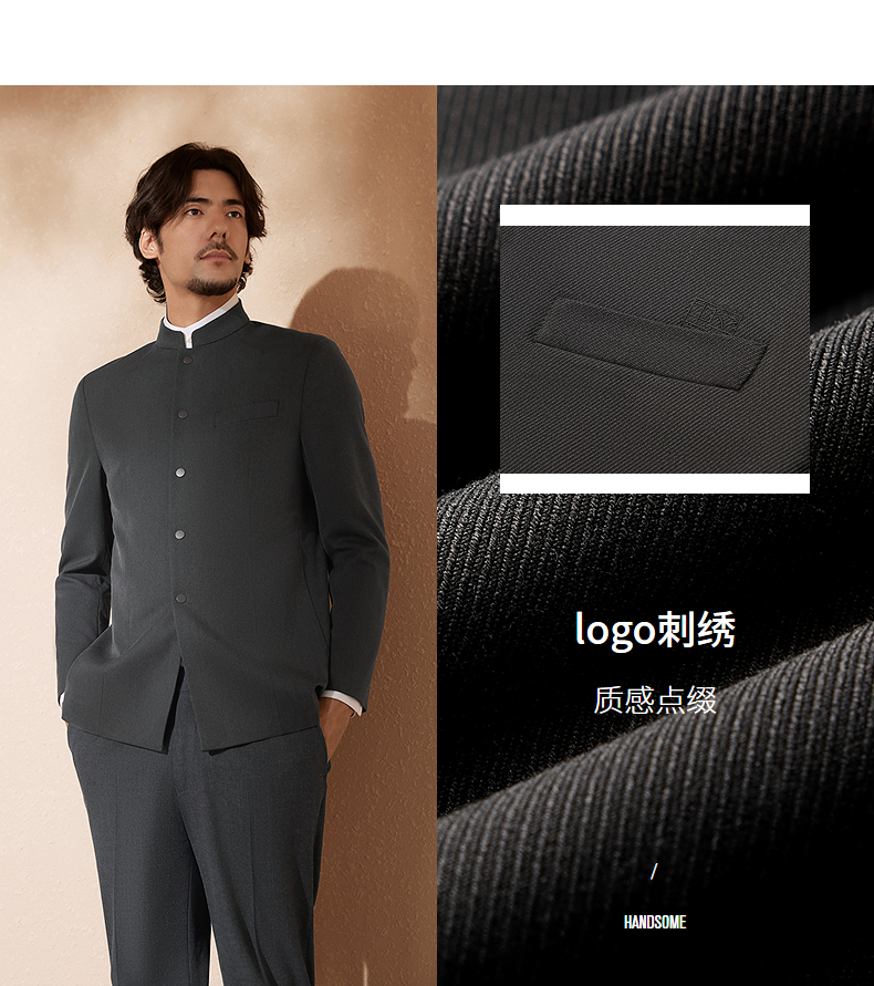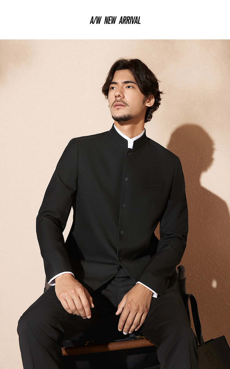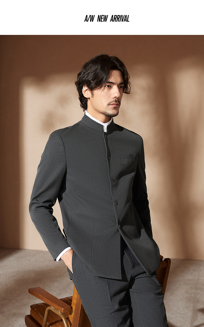 【中华立领】柒牌西服男士春秋款商务休闲正装斜纹肌理单西装外套 127C70550