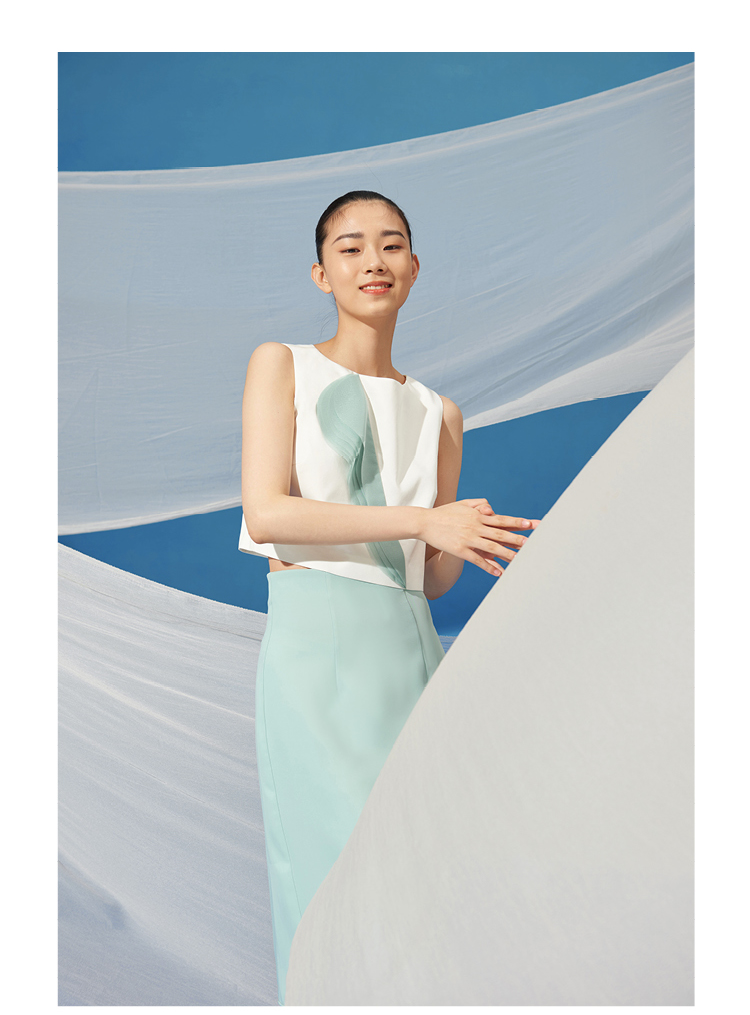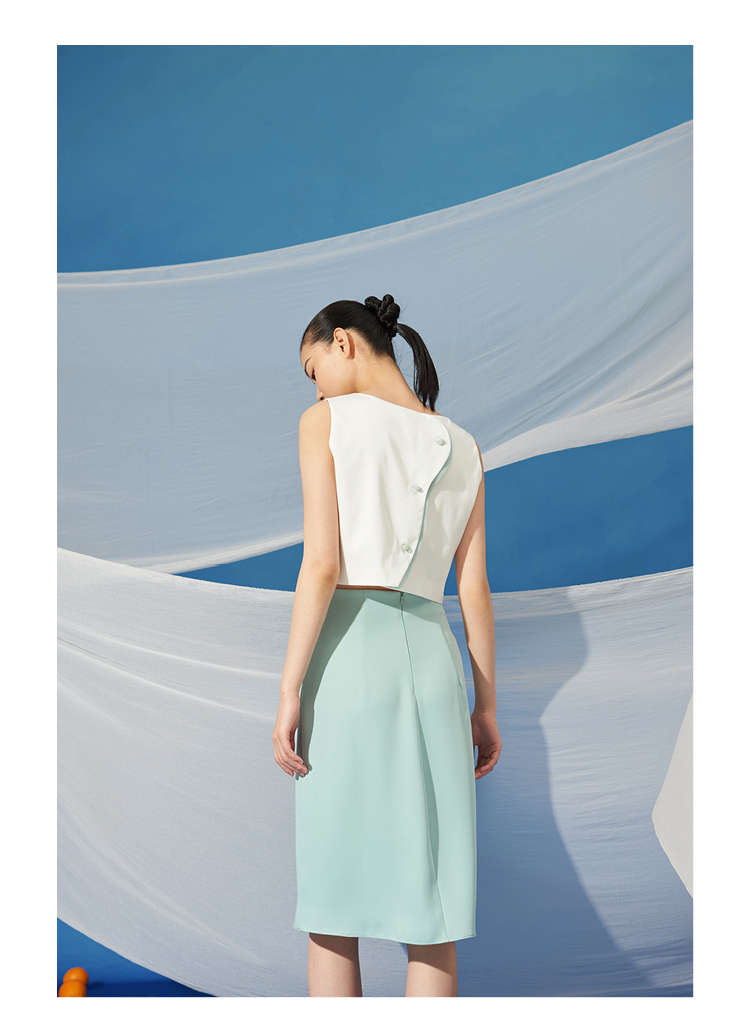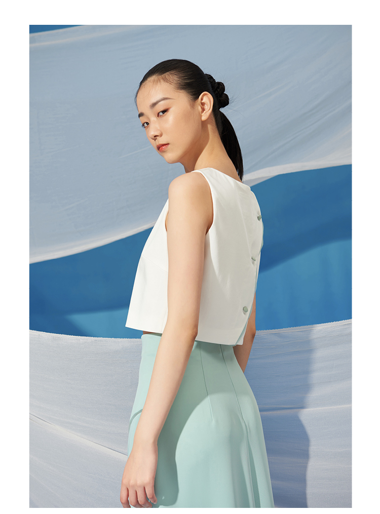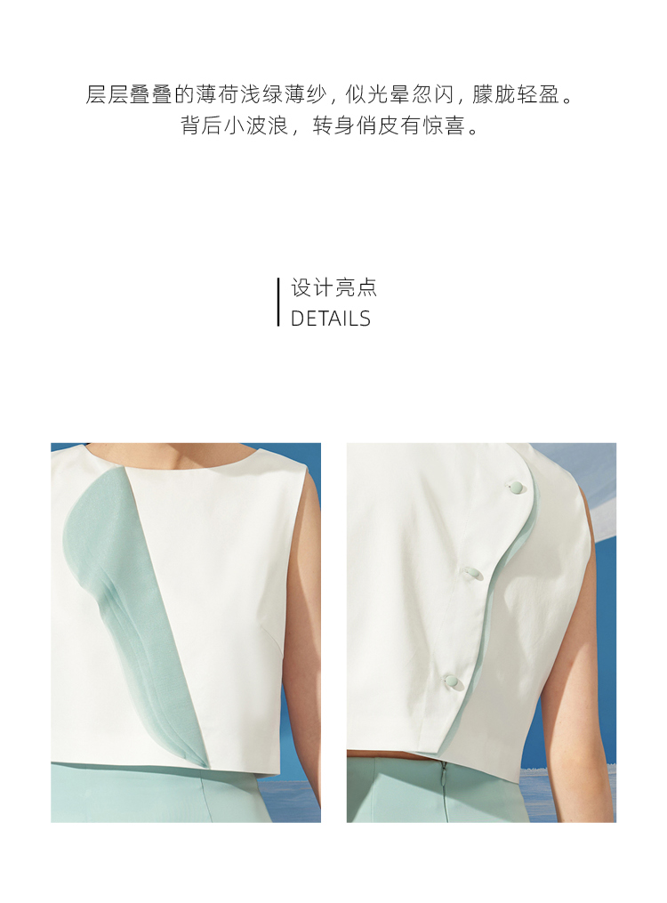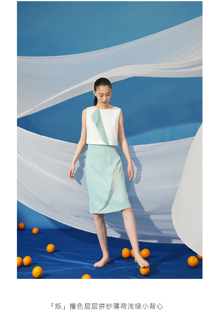 【烁】夏日温柔撞色层层拼纱薄荷浅绿小背心/00192