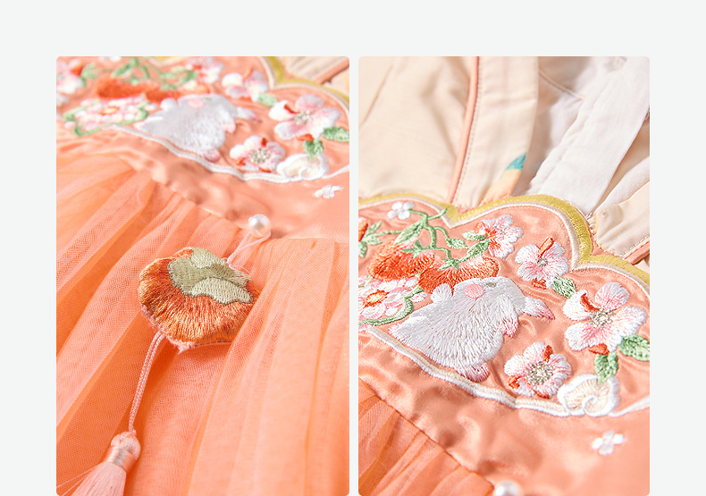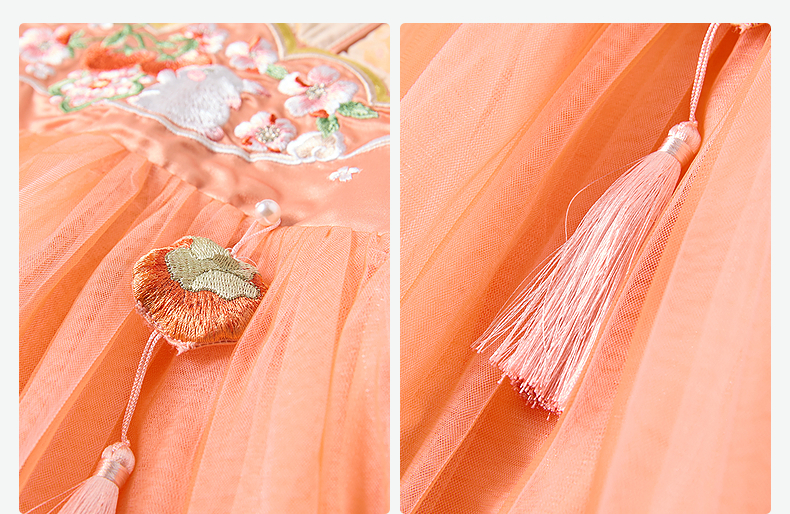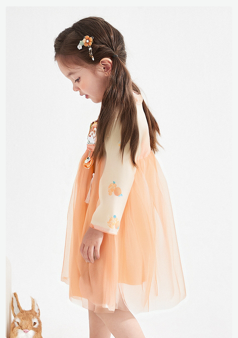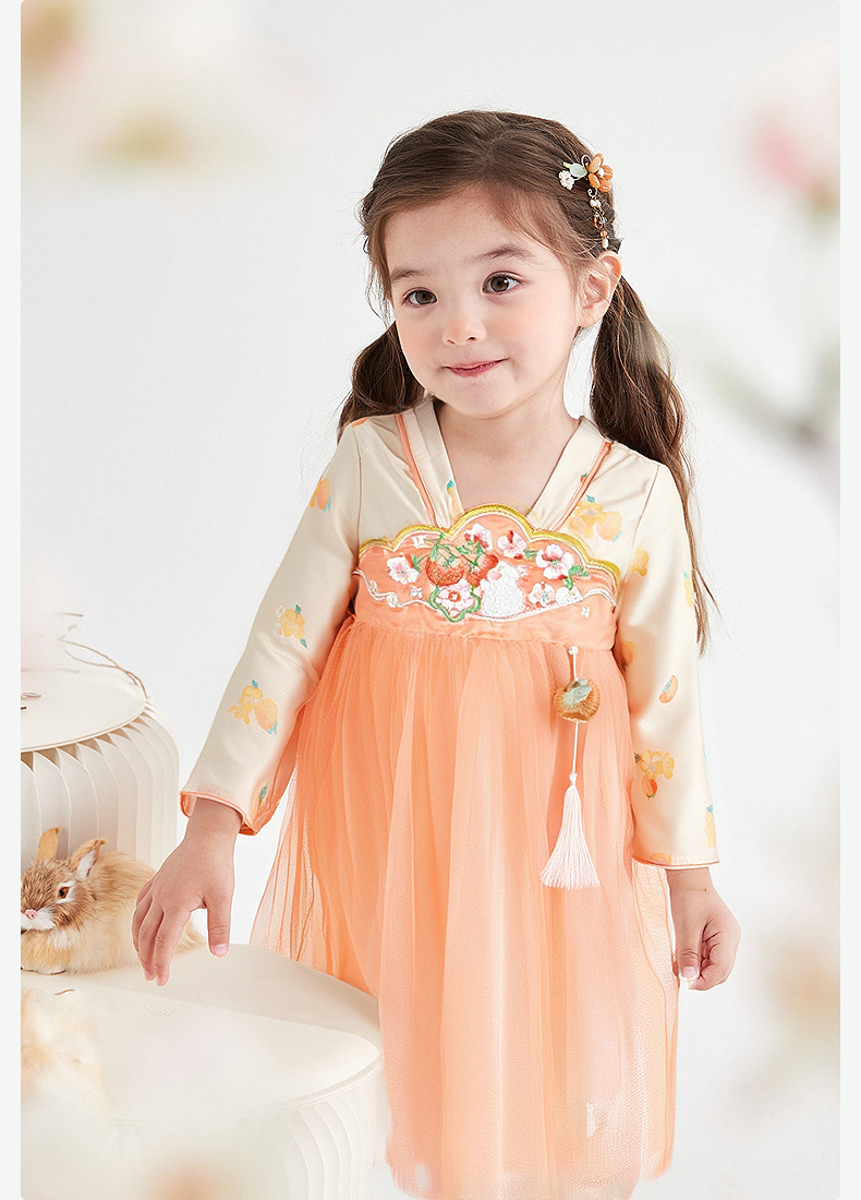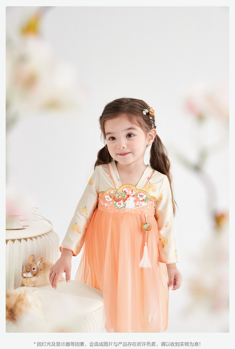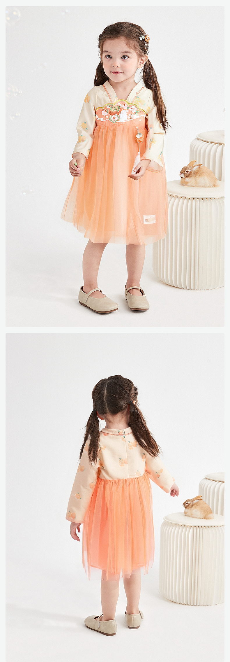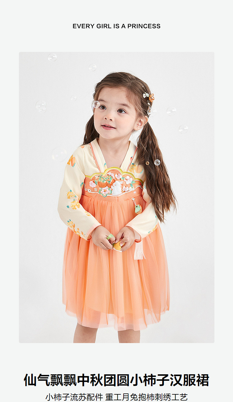 笛莎Deesha 童装女童裙子2025秋新款女童仙气飘飘中秋团圆小柿子汉服裙