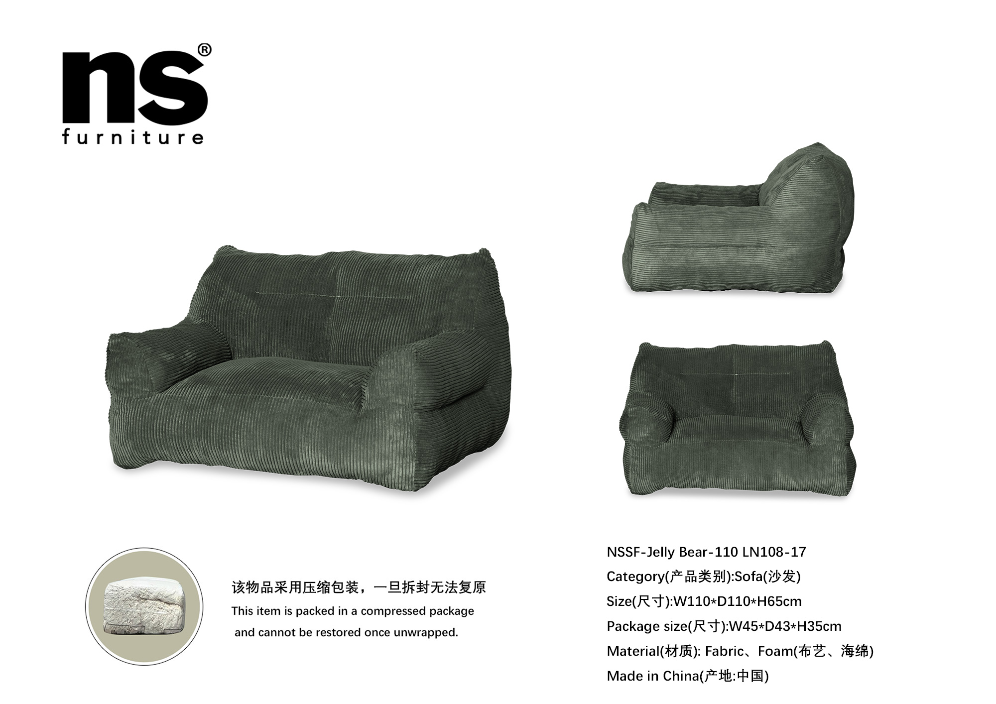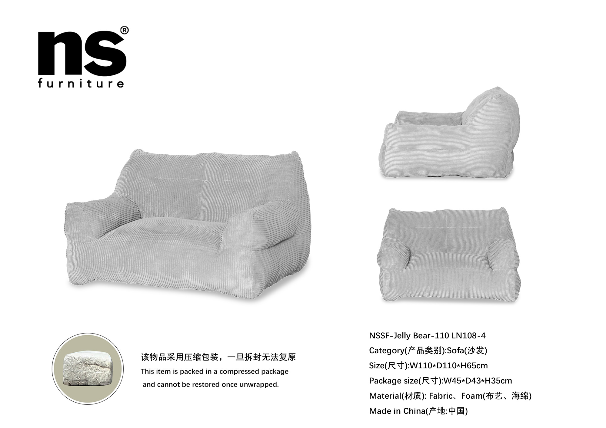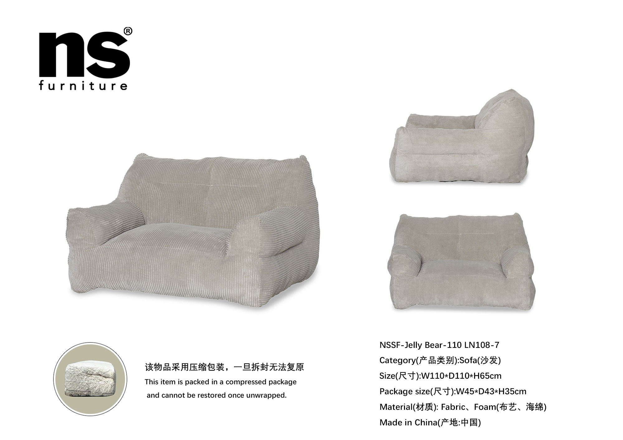 | 品名 | NS家居nsfurniture - Jelly Bear-95解压泰迪熊懒人三人位沙发 |