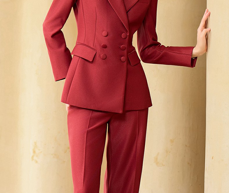 IWY/高端红色宴会礼服西装套装女气质年会主持人正装双排扣正装33006C1+P6