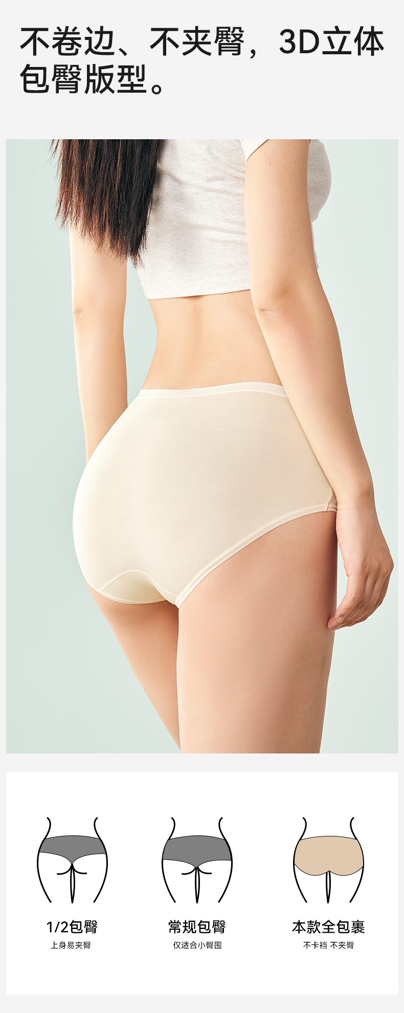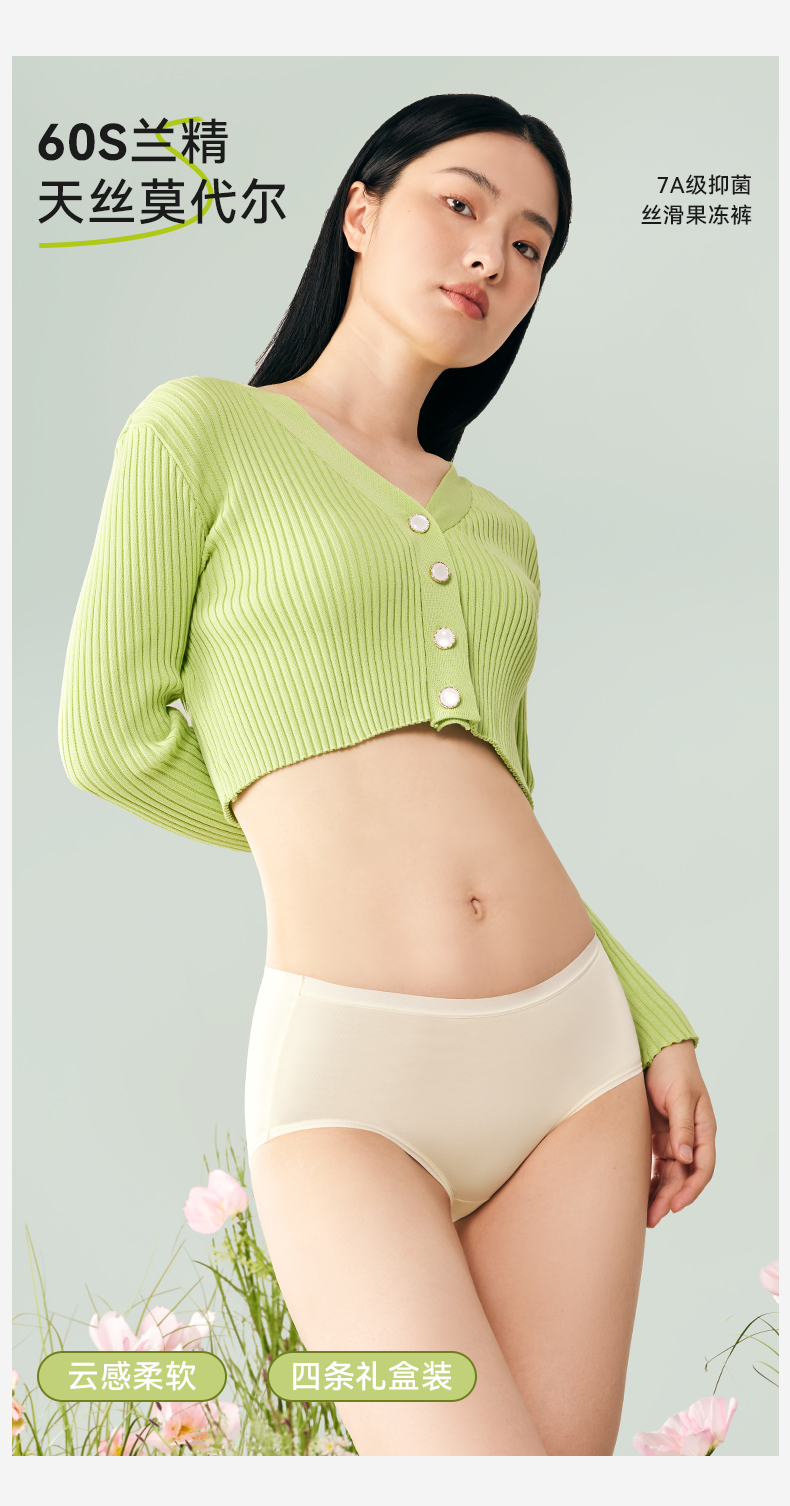 4条 莫代尔蚕丝果冻裤7A透气 中腰女士内裤 A-4313