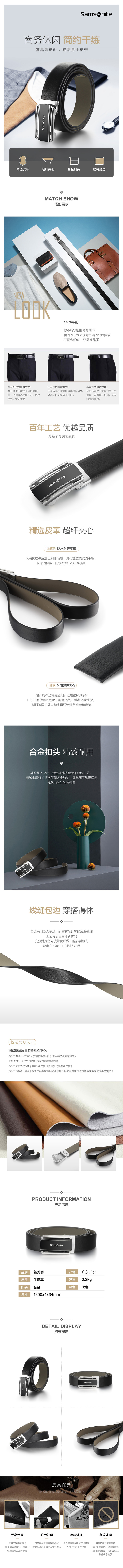 新秀丽皮带男真皮 商务休闲头层牛皮腰带自动扣裤带 BW6*003