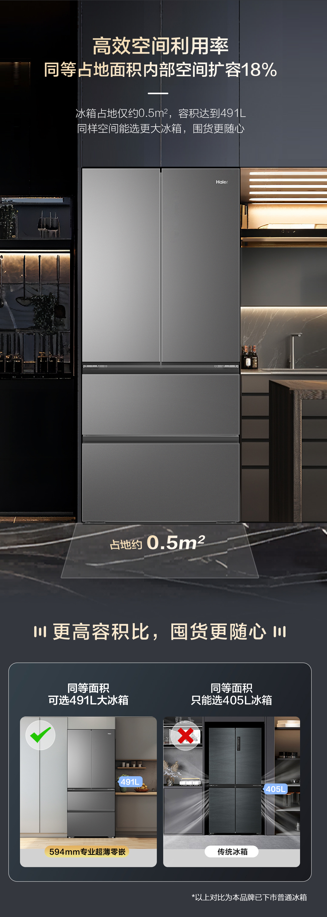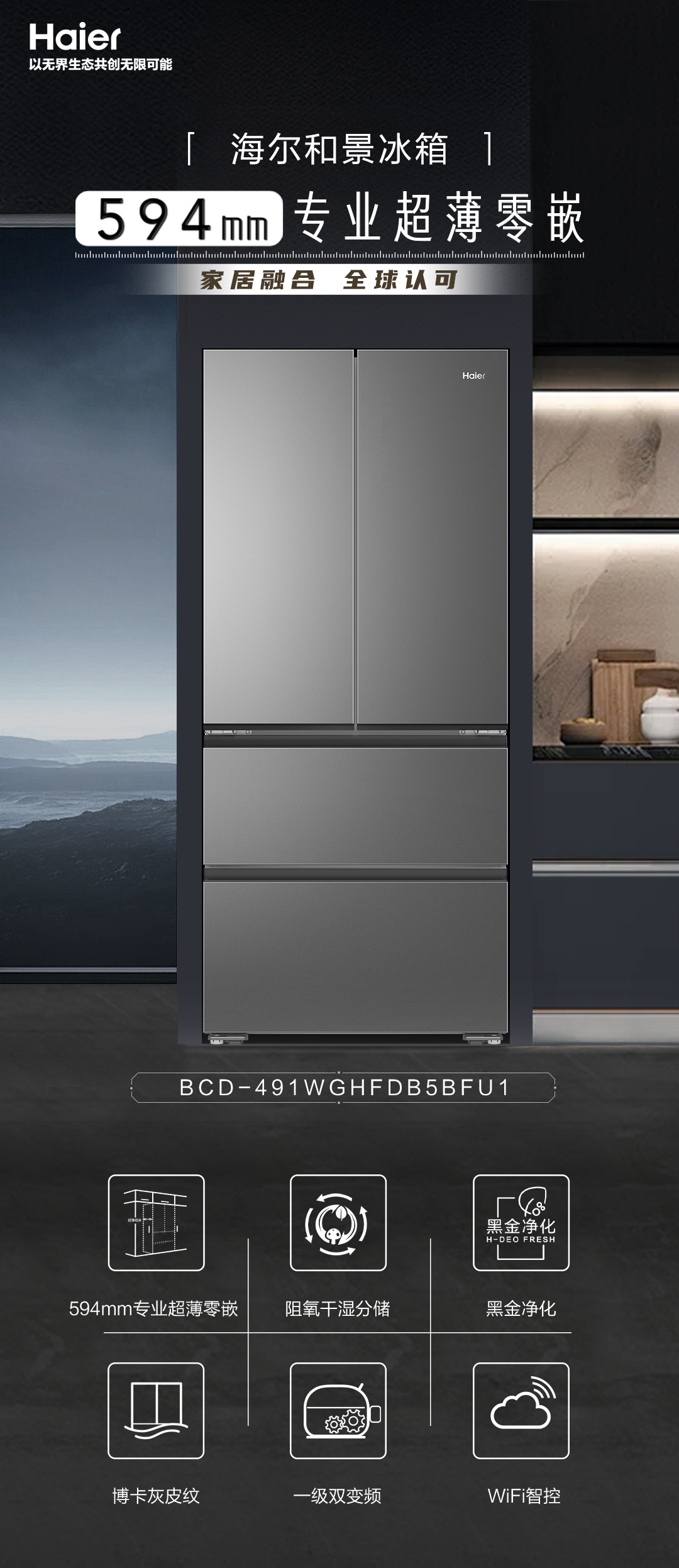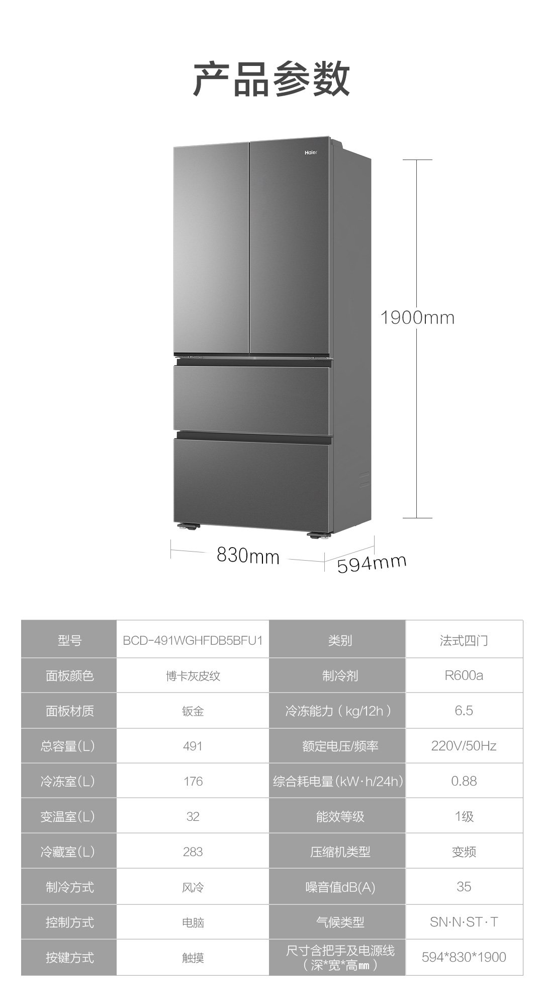 Haier/海尔 BCD-491WGHFDB5BFU1灰 冰箱