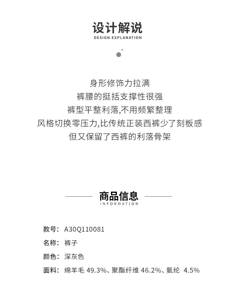 【商场同款】阿菁娜冬季新款多场景西装裤利落专业不刻板羊毛锁温通勤休闲一键切换A30Q110081
