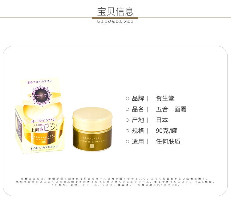【爆款超低价预售 急单慎拍】日本资生堂水之印五合一懒人面霜90g 黄金色抗皱保湿补水睡眠晚霜