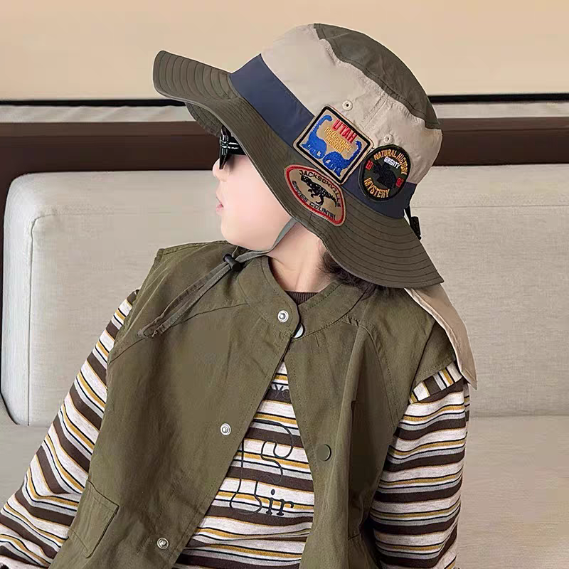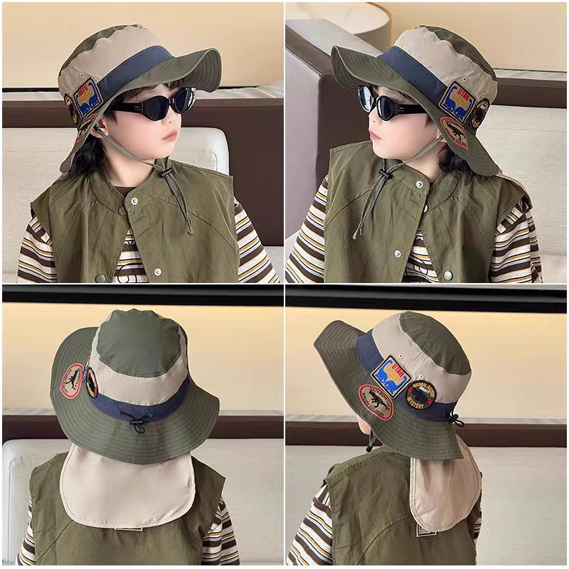 童趣拉满!儿童恐龙披肩帽来袭🦖 这款儿童恐龙披肩帽,简直是小朋友们的户外时尚神器! 独特恐龙元素设计,瞬间让宝贝化身小小探险家! 大帽檐搭配披肩,全方位遮挡阳光,无论是公园玩耍、沙滩嬉戏还是郊游漫步,都能为宝贝阻挡紫外线,守护稚嫩肌肤🌞 材质轻盈透气,不闷热,给宝贝最贴心的呵护~