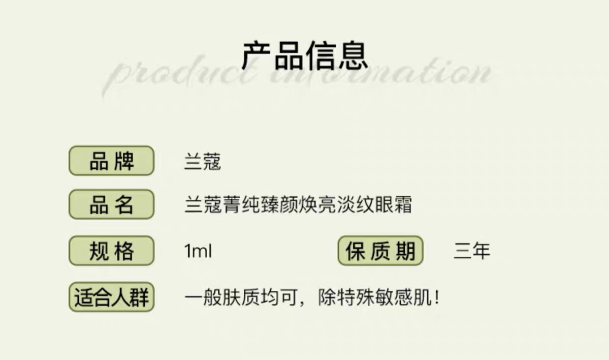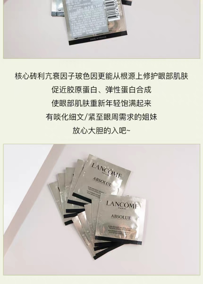 兰蔻菁纯臻颜焕亮眼霜1ml提拉紧致滋养淡化细纹去黑眼圈