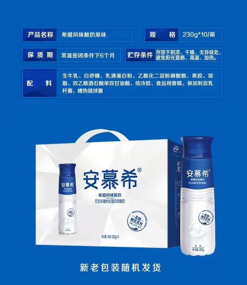 安慕希伊利高端原味畅饮型酸奶230g*10瓶整箱酸牛奶