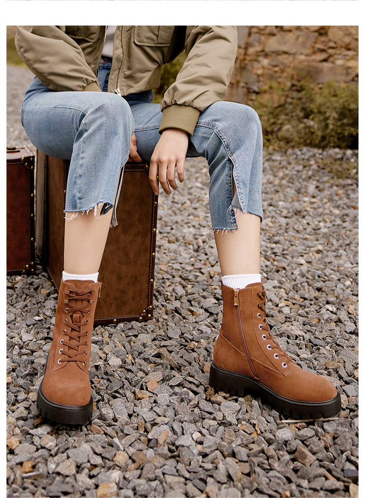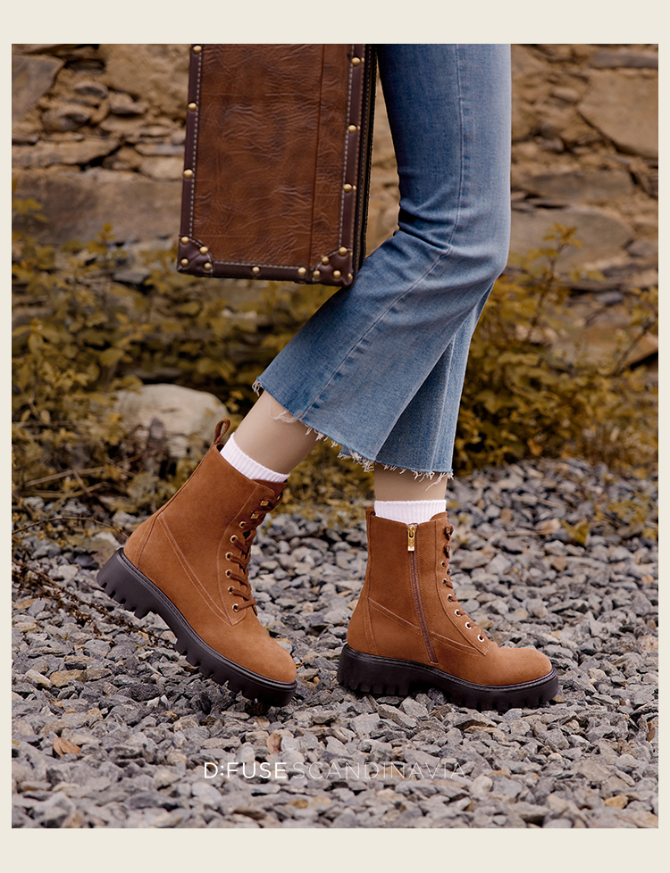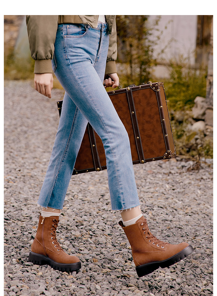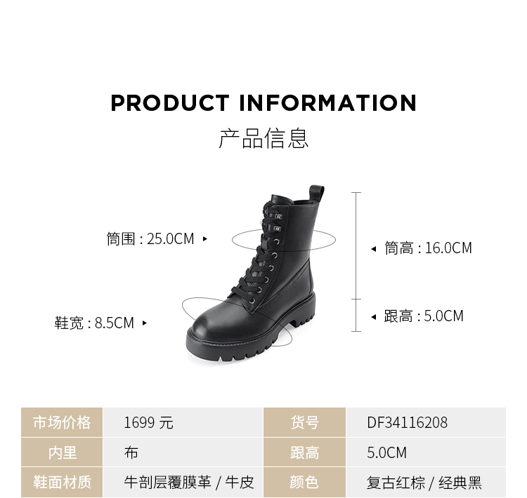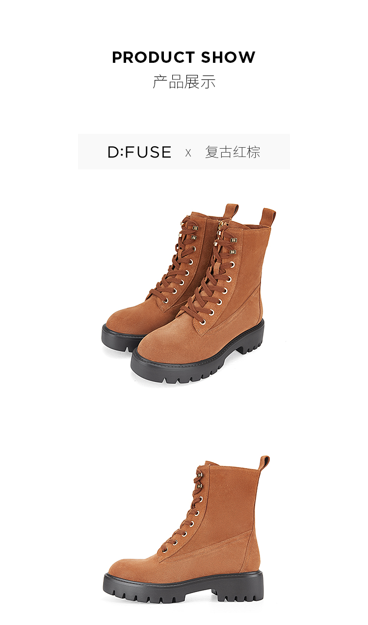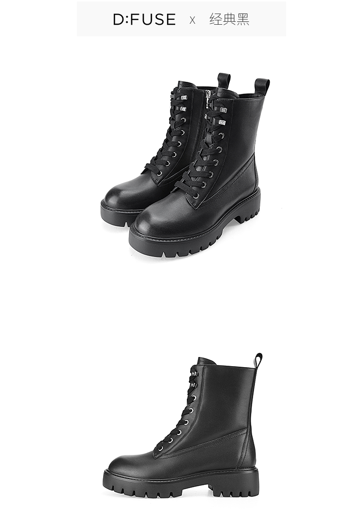 Dfuse迪芙斯冬季新款圆头简约厚底户外马丁靴短靴DF34116208