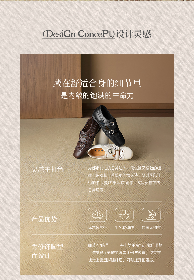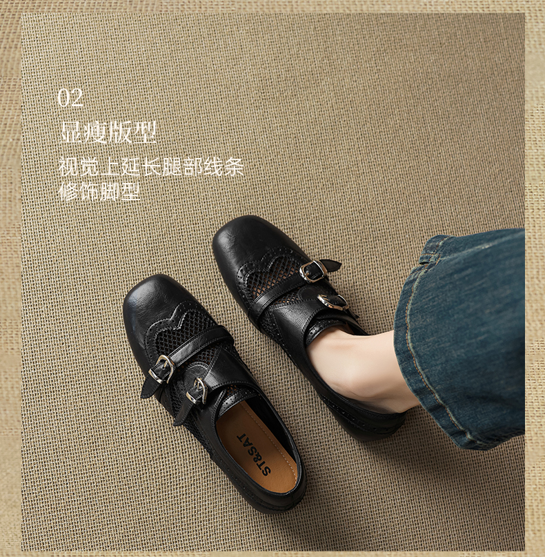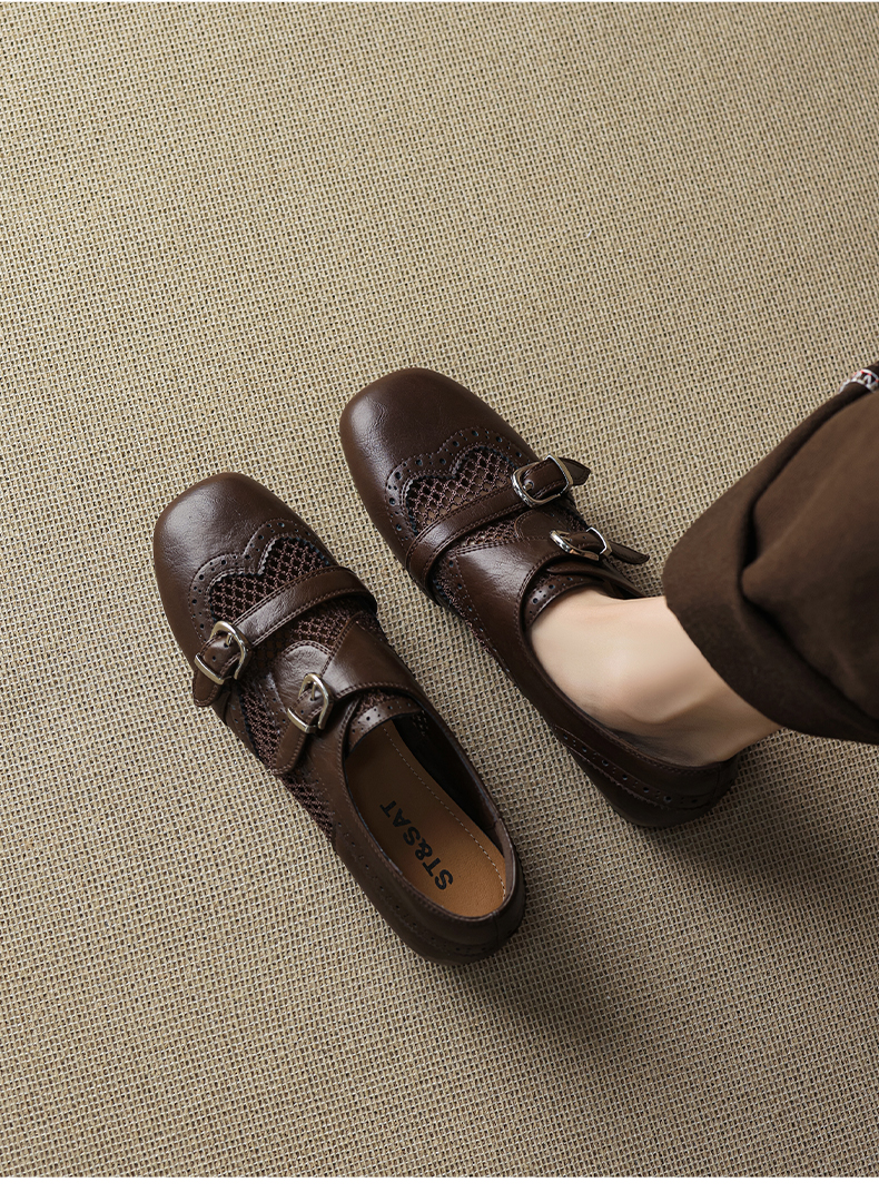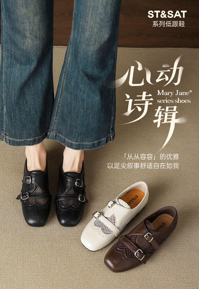星期六26春新款复古布洛克镂空平底玛丽珍SSE1112CJL