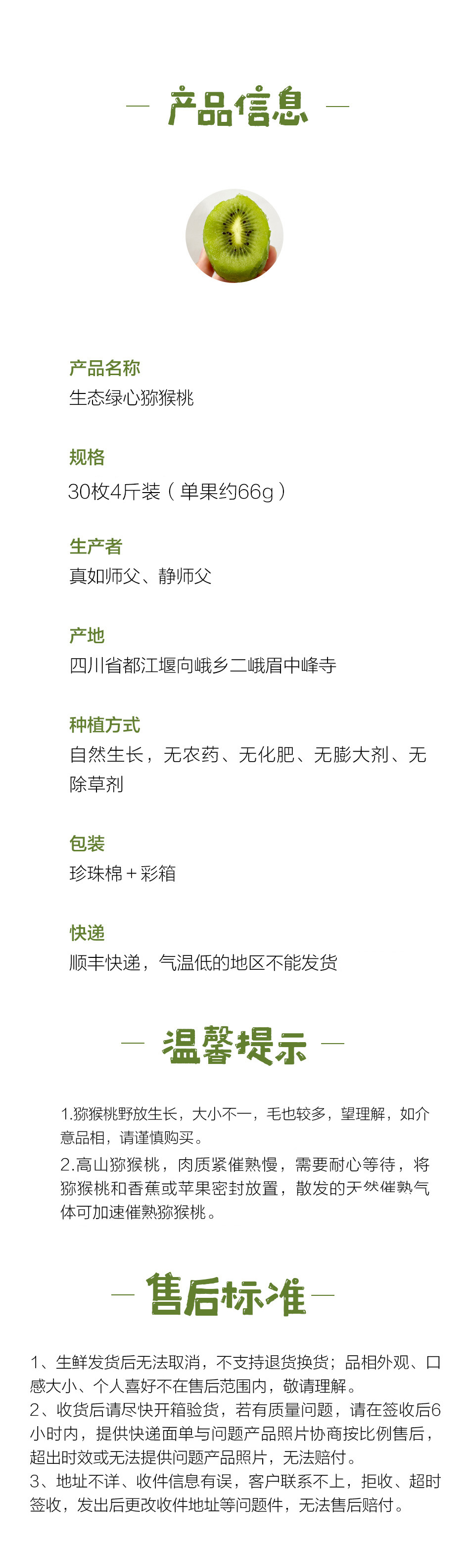 生态绿心猕猴桃(成都仓库-顺丰包邮) | 多种规格,来自四川都江堰中峰寺,生产者:真如师父,静师父【合作生产,公平贸易】