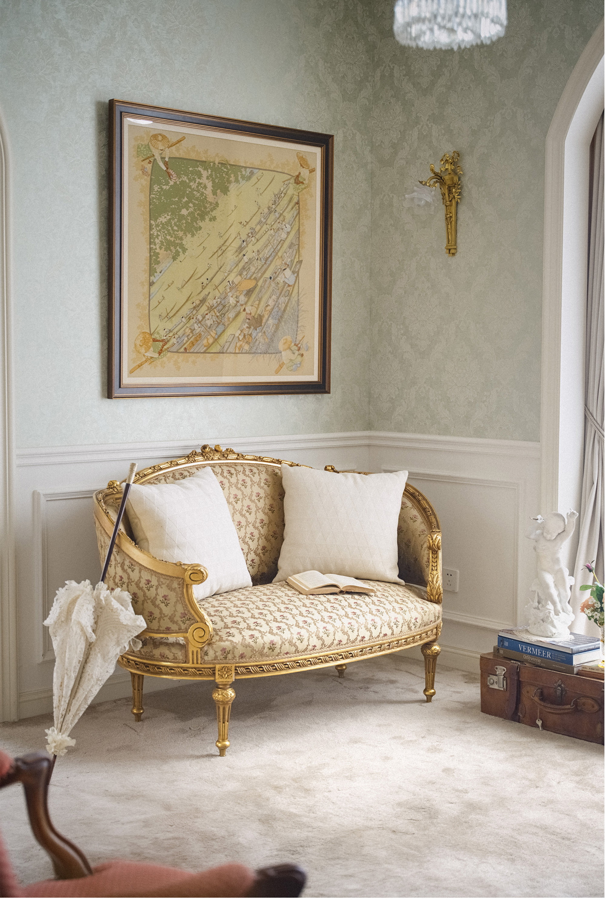 材质:木鎏金,缎面