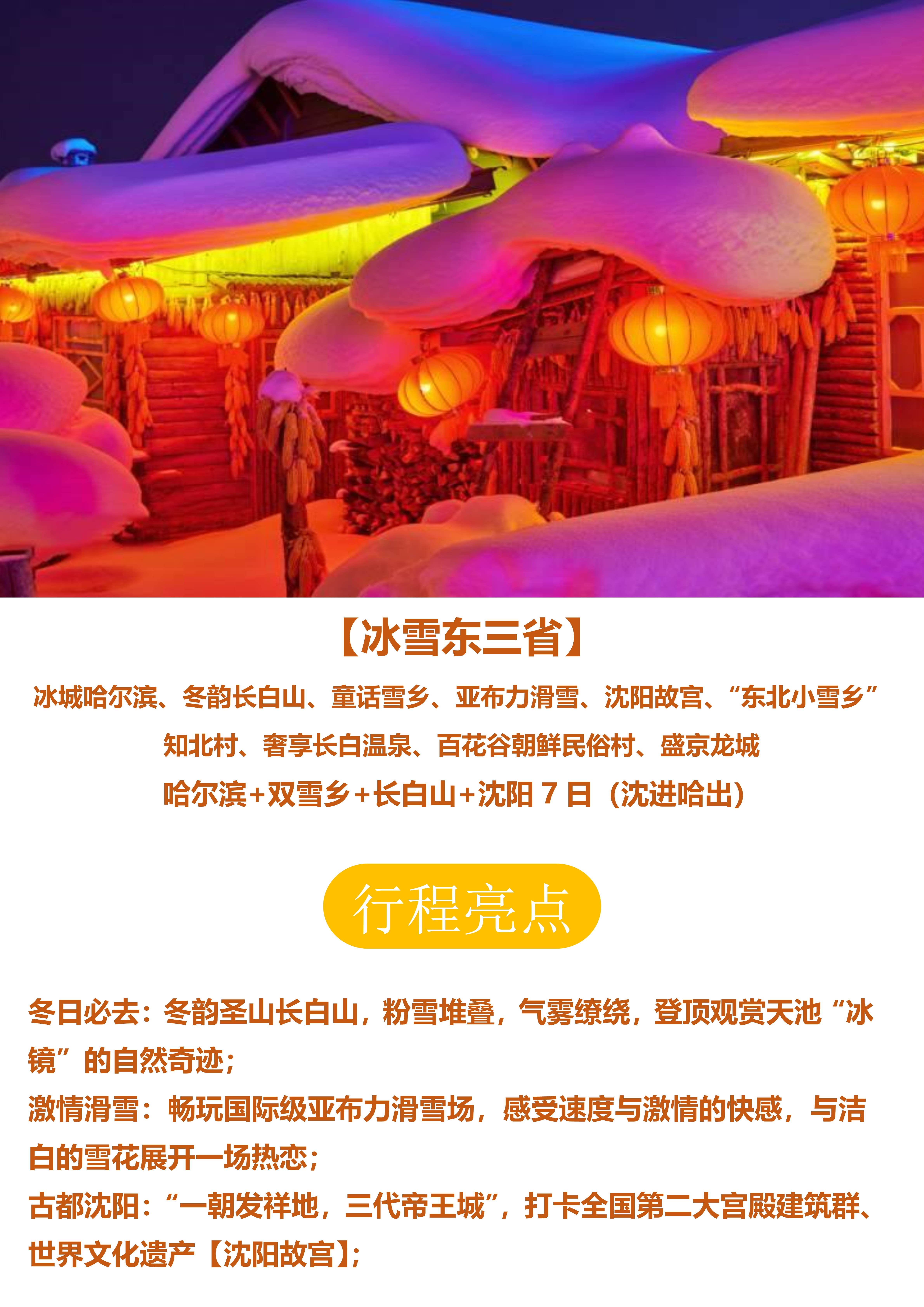 【冰雪东三省】哈尔滨+双雪乡+长白山+沈阳7日(沈进哈出)