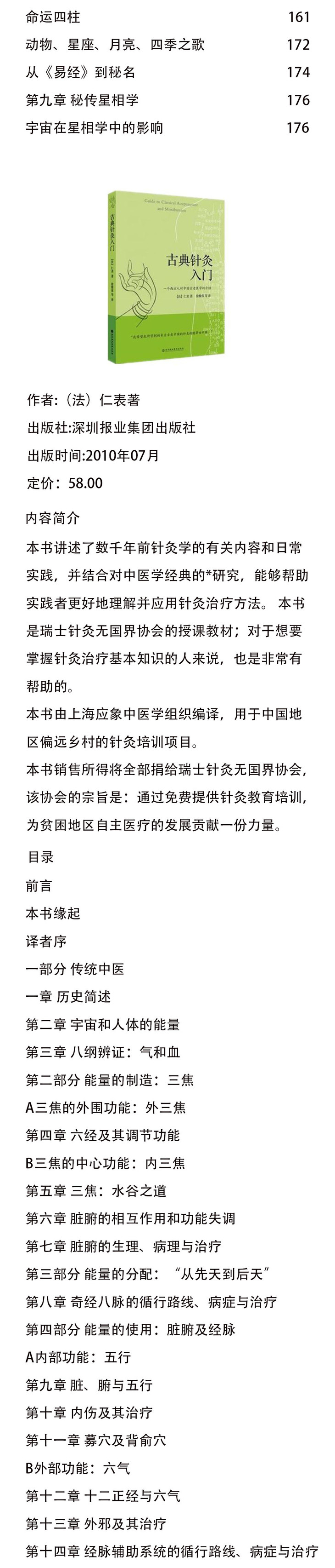 《古典针灸入门》讲述了数千年前针灸学的有关内容和日常实践,并结合对中医学经典的近期新研究,能够帮助实践者更好地理解并应用针灸治疗方法。《古典针灸入门》是瑞士针灸无国界协会的授课教材;对于想要掌握针灸治疗基本知识的人来说,也是非常有帮助的。