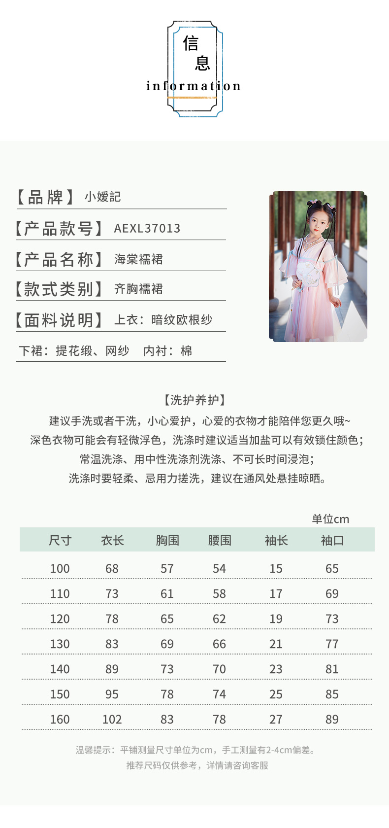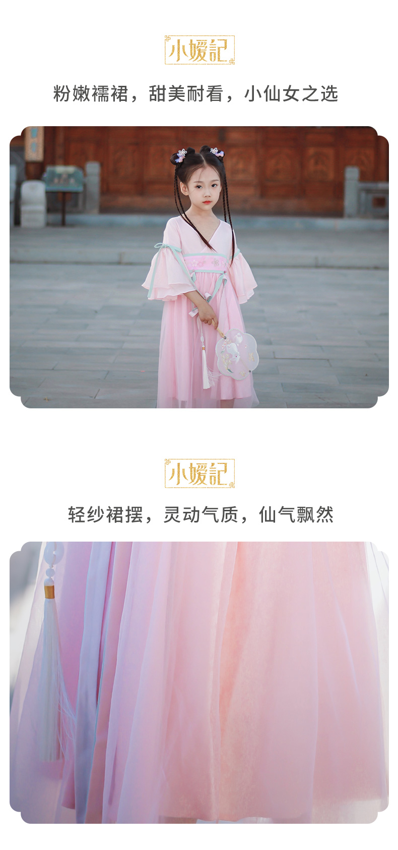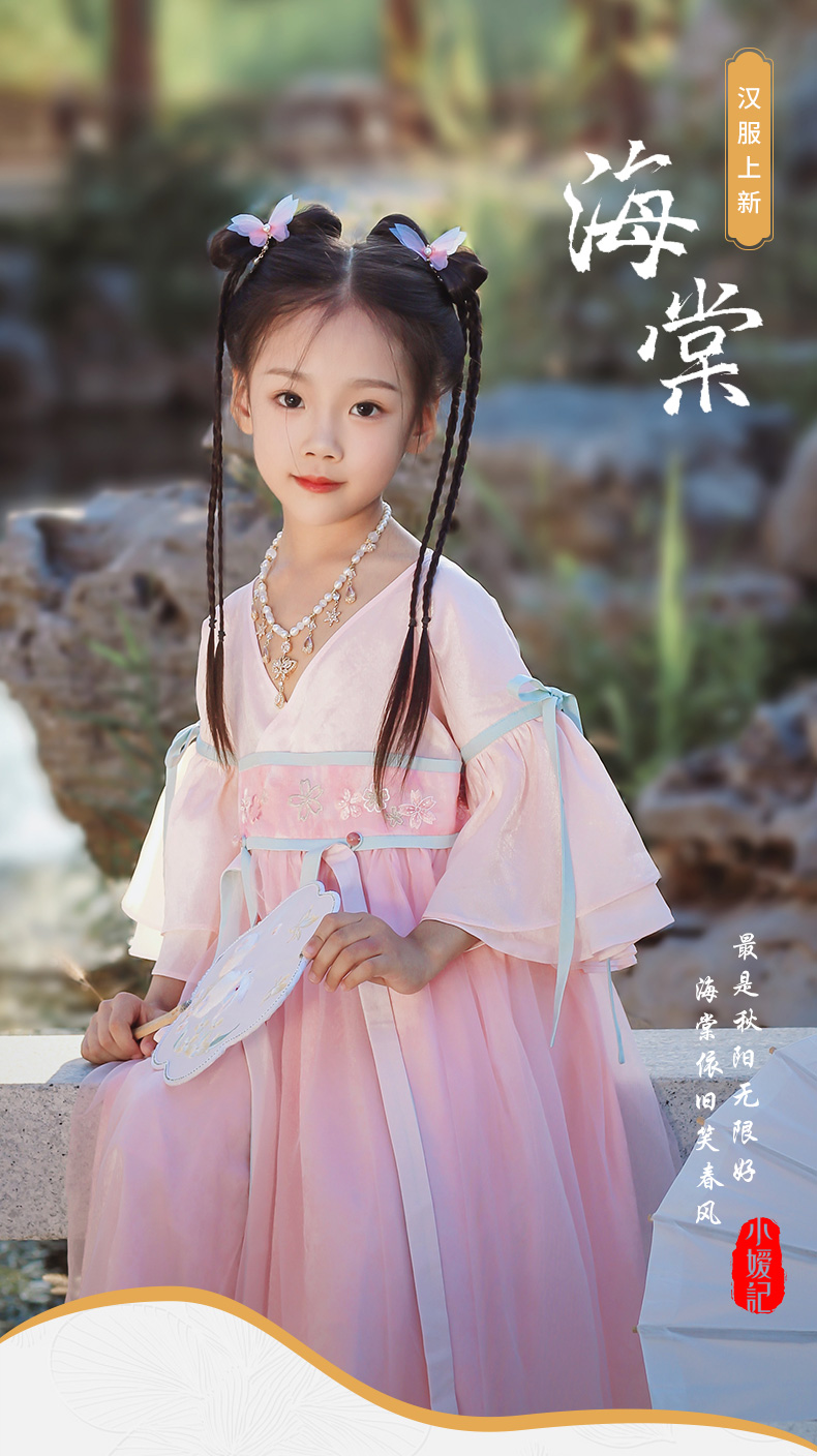 小嫒記 汉服女童秋季儿童汉服超仙中国风女宝连衣裙-海棠襦裙