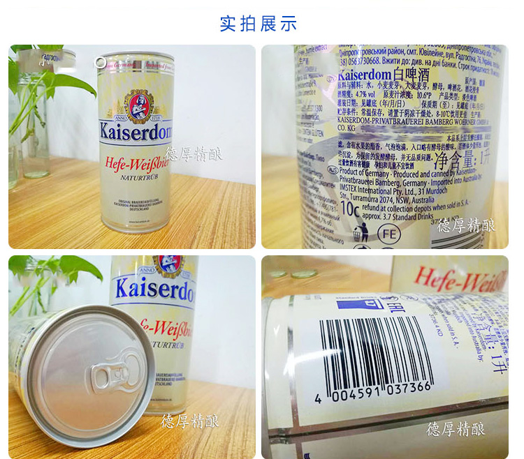 德国进口啤酒Kaiserdo m 凯撒顿姆1L小麦白啤酒12听整箱啤酒纯麦