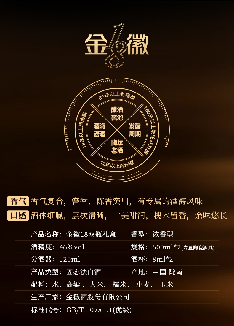 【员工专属】金徽酒 46度金徽18白酒礼盒 500ml*2瓶 浓香型白酒