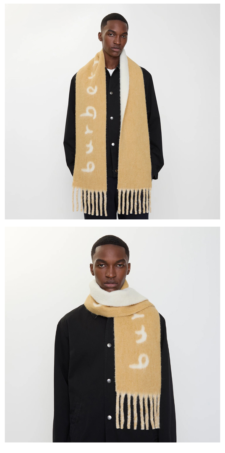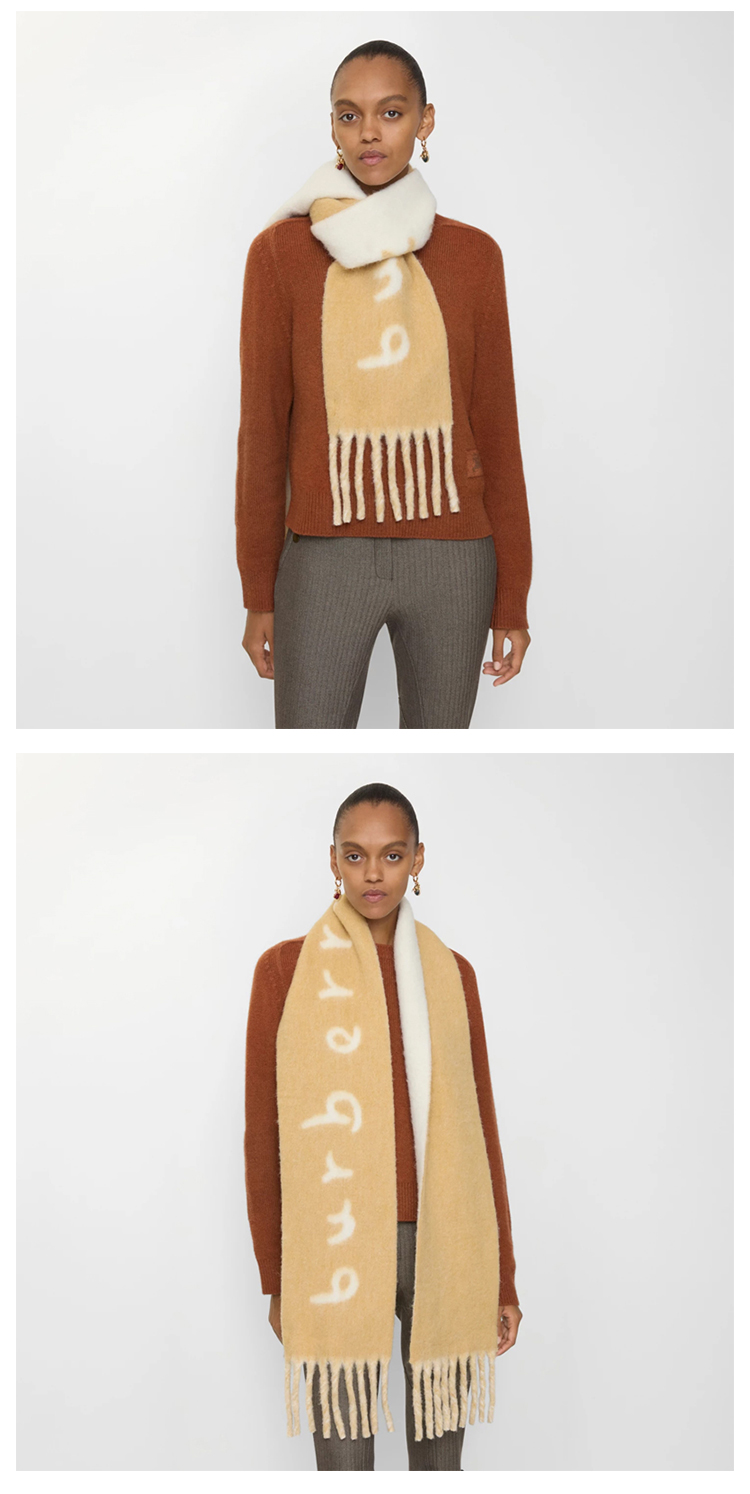 BURBERRY 巴宝莉 中性双面两用徽标装饰羊驼毛混纺围巾 驼色 8114082 A2021