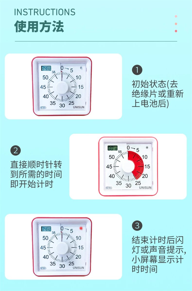 专治孩子拖延症!UNISUN时间管理器!可以正计时、倒计时,还能当闹钟、秒表。