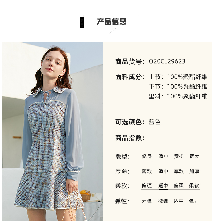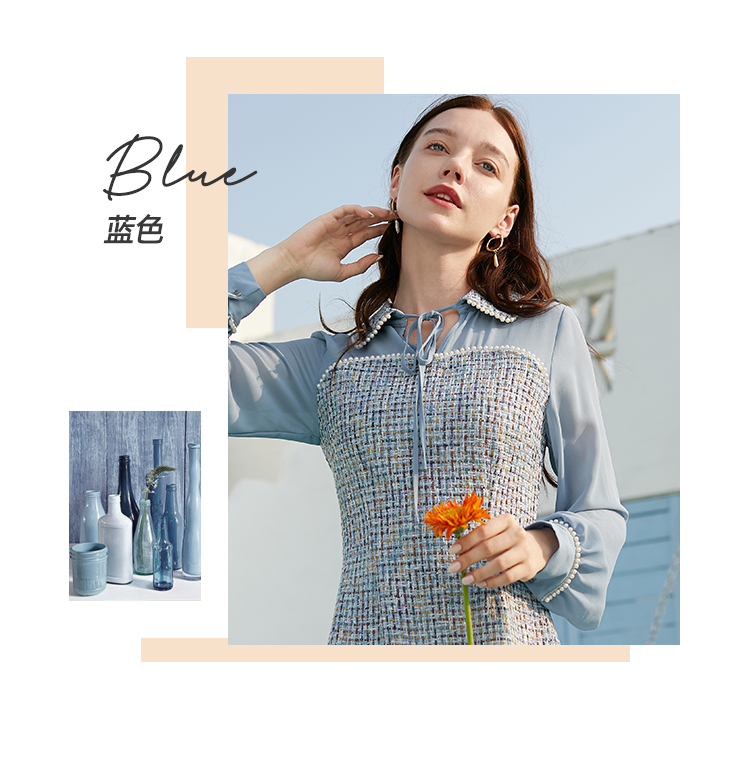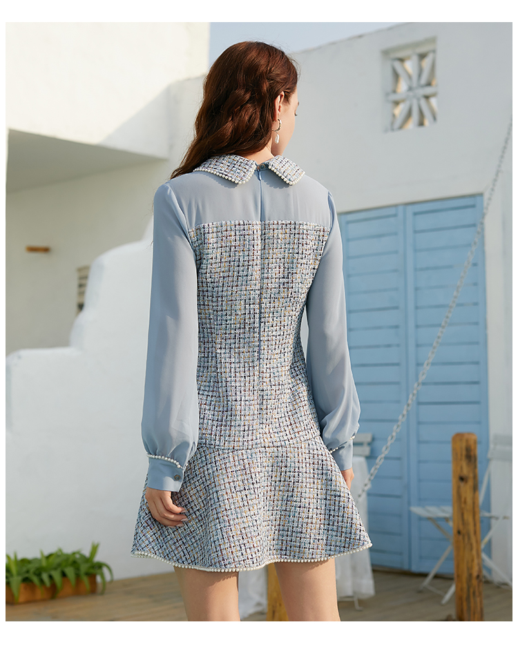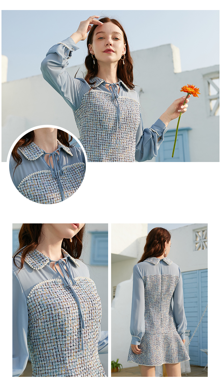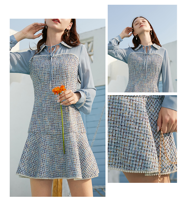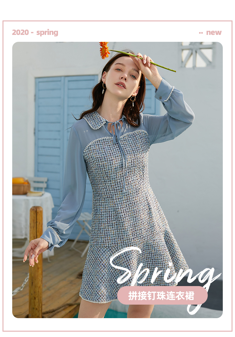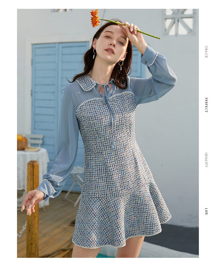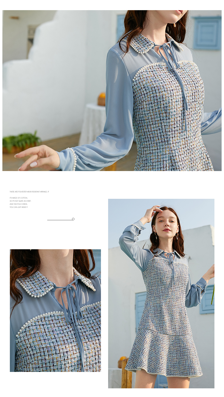 欧芮儿春夏新款长袖雪纺小香风连衣裙女中长款气质鱼尾裙