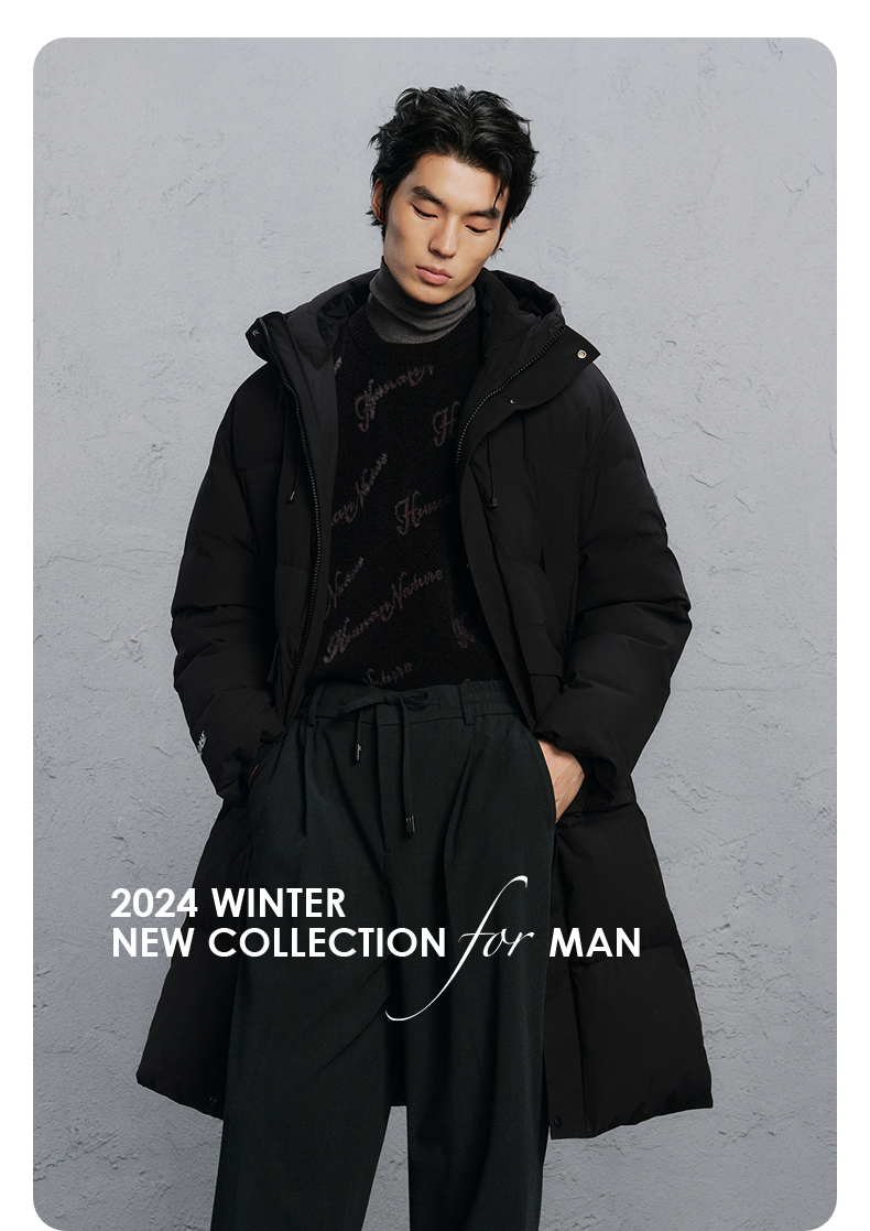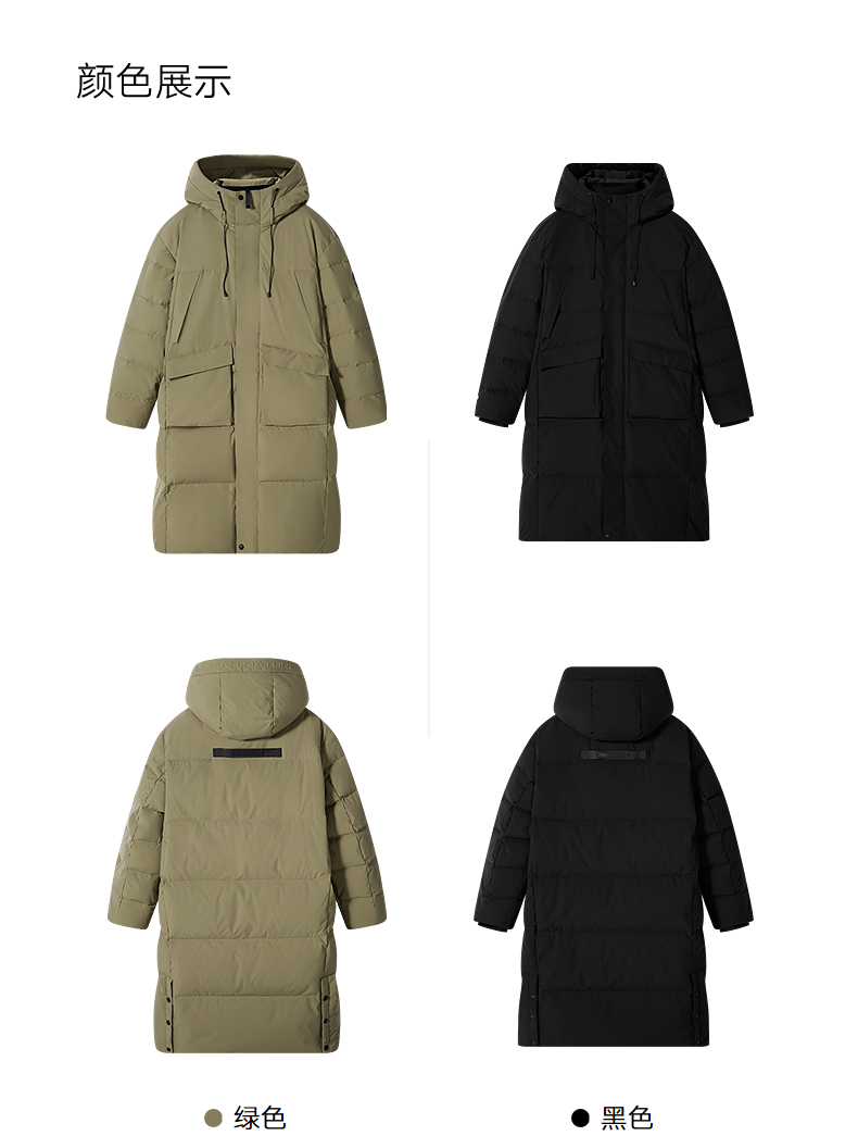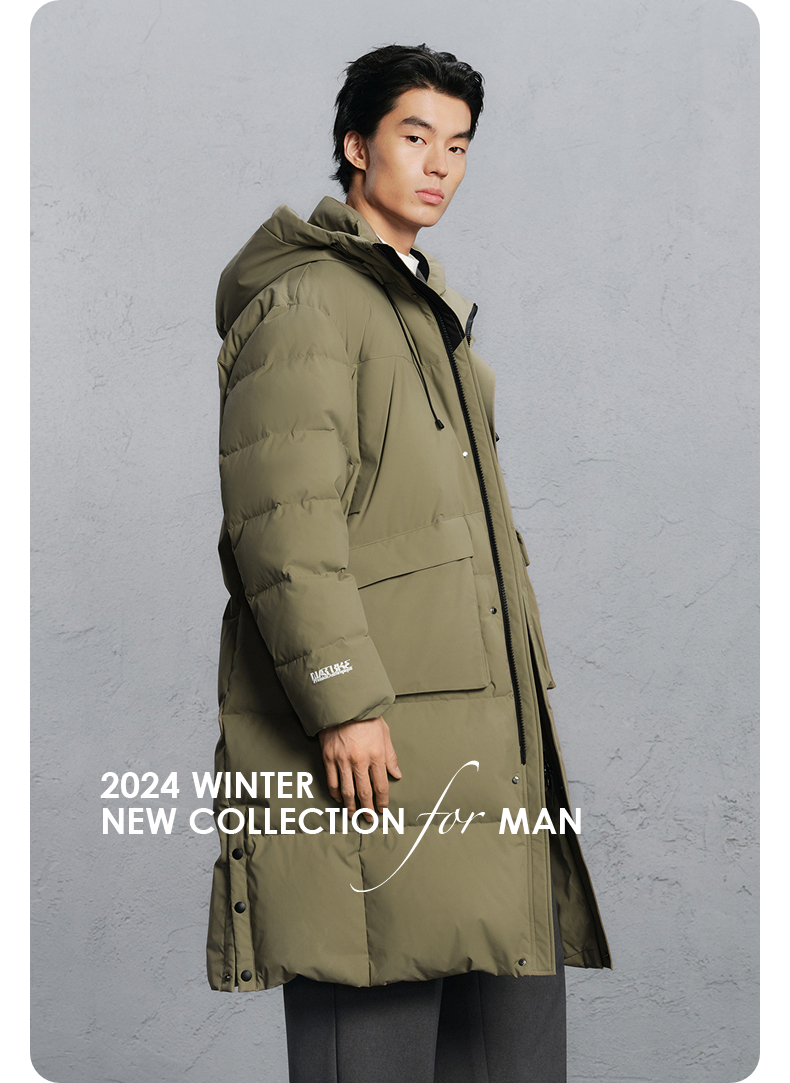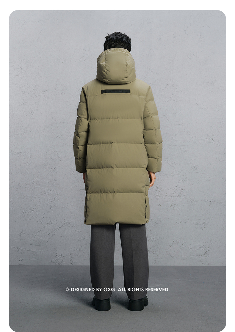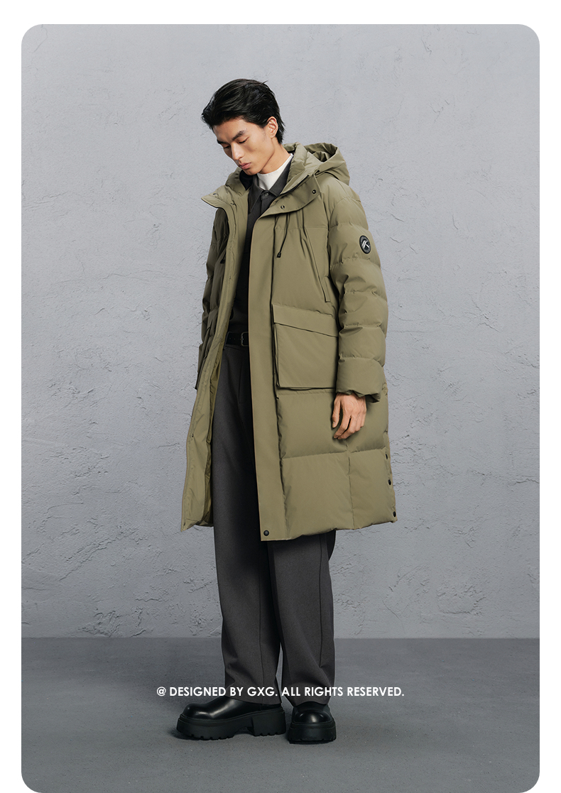 GXG男装 绿色简约长款通勤羽绒服男 24冬季热卖羽绒服G24XY14004