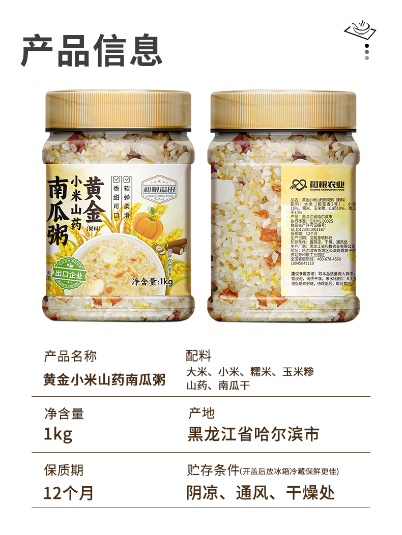 田园系列黄金小米山药南瓜粥 1kg