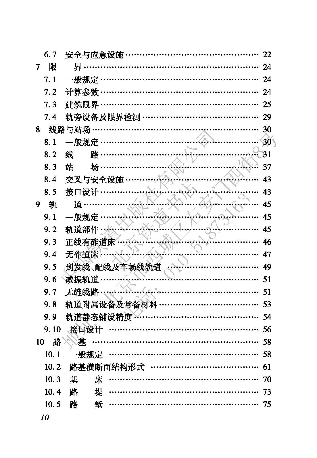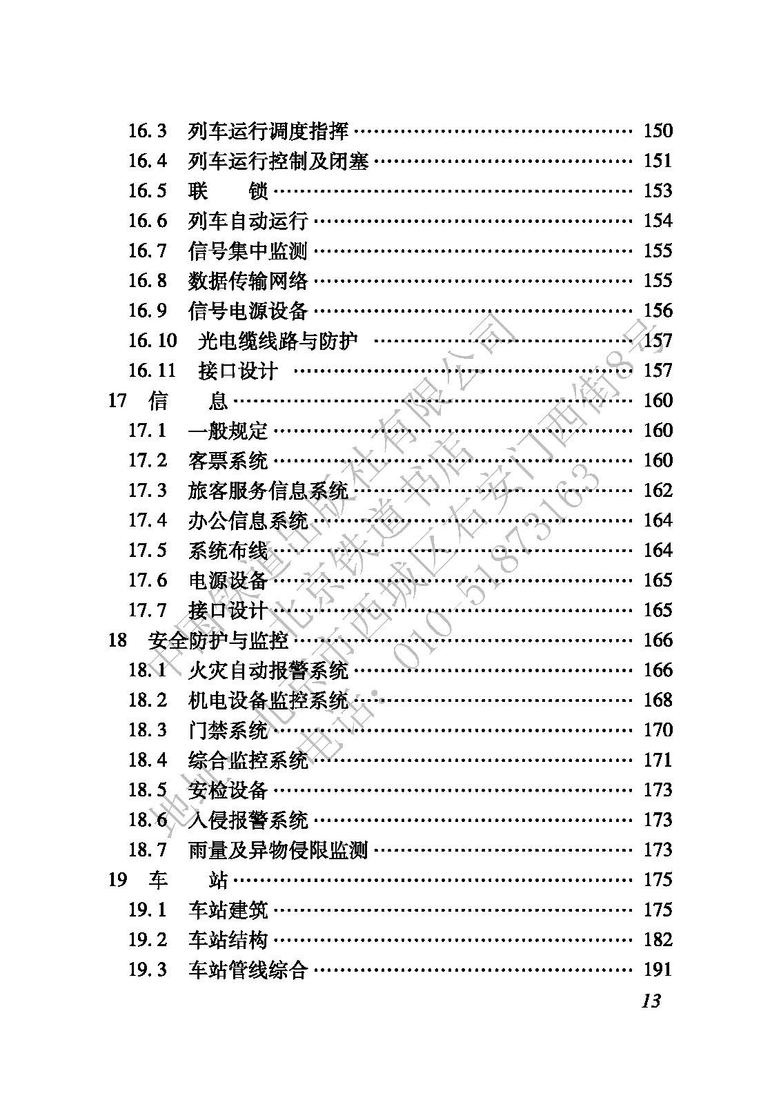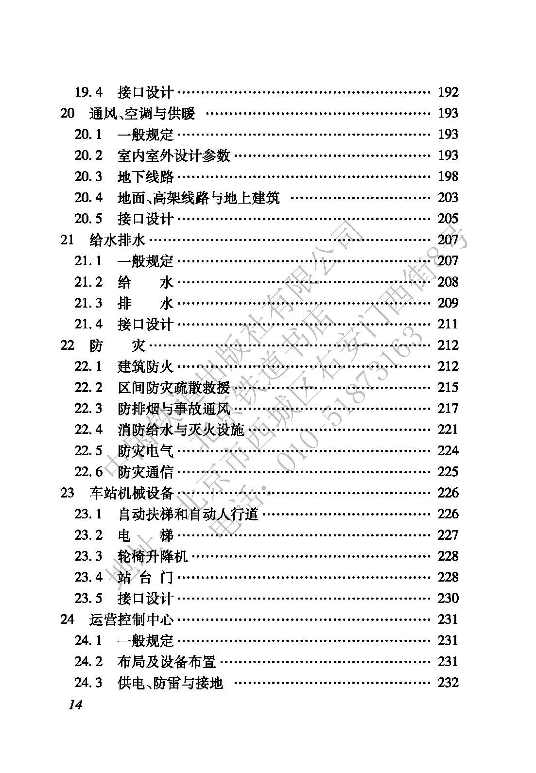 本规范由27章组成,包括:总则,术语和符号,总体设计,客流预测,行车组织与运营管理,车辆,限界,线路与站场,轨道,路基,桥涵,隧道,牵引供电,电力,通信,信号,信息,安全防护与监控,车站,通风空调与供暖,给水排水,防灾,车站机械设备,运营控制中心,车辆基地与综合维修,综合接地及环境保护,另有5个附录。