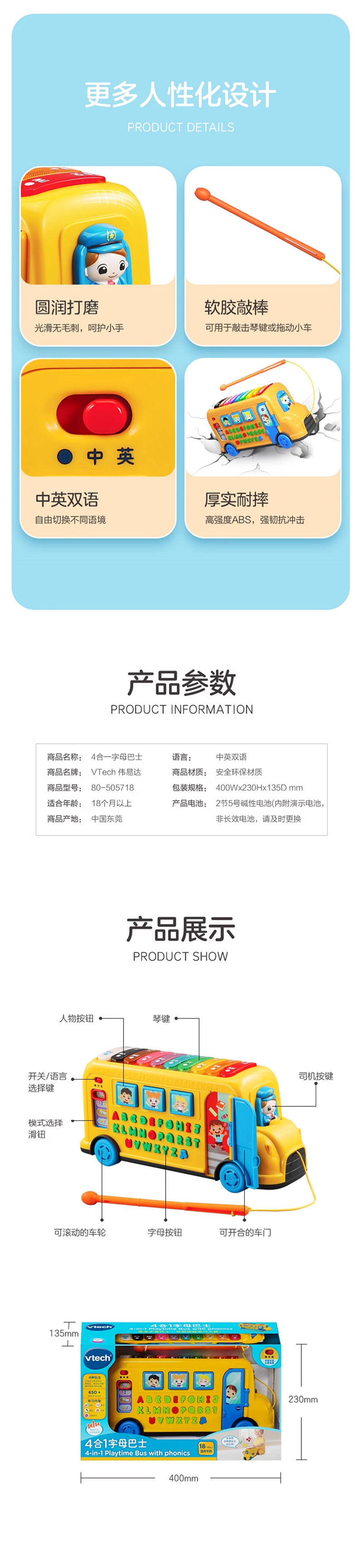 新款伟易达4合1字母巴士拖拉玩具车早教课木琴儿童音乐益智玩具宝宝