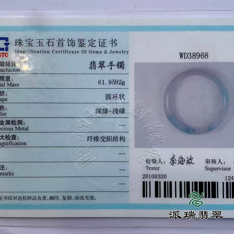派瑞翡翠 翡翠手镯 糯种 绿色 飘花