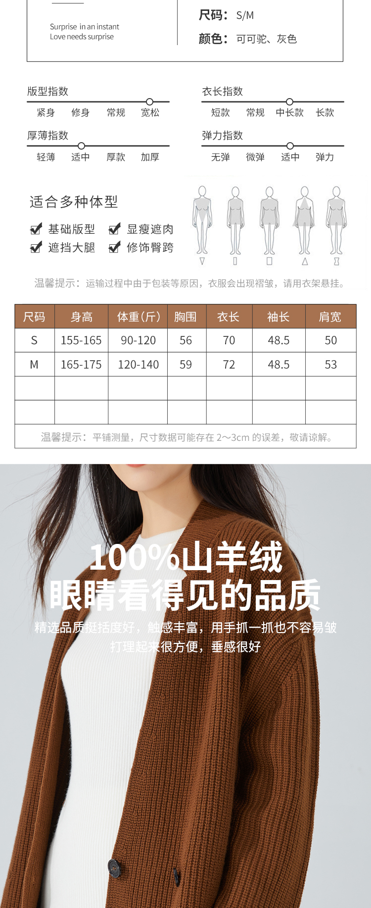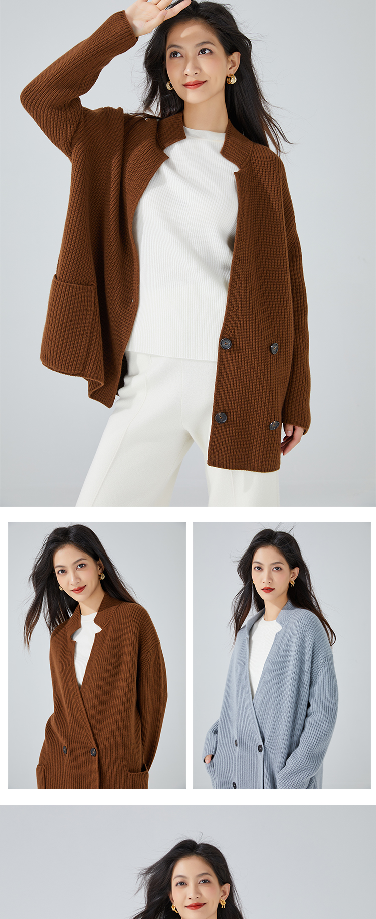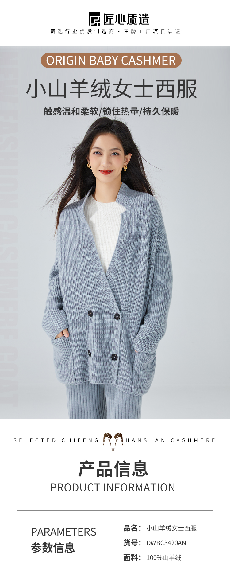 东黎 • 小山羊绒女士秋冬宽松西服版开衫 3420