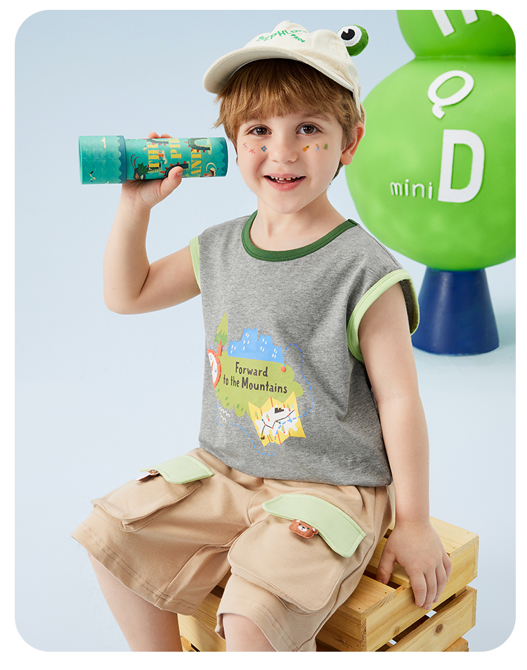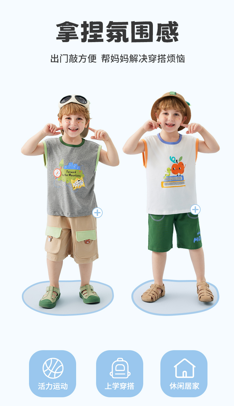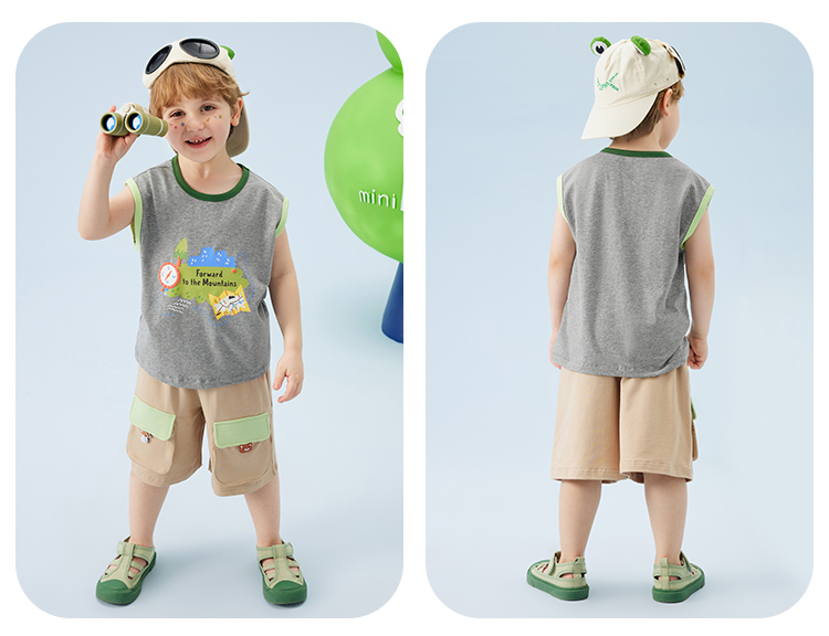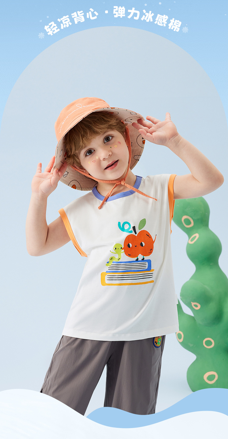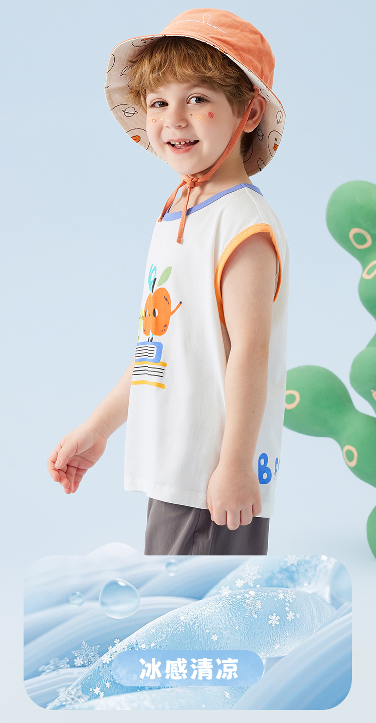 【冰感棉】【80-140】【MQDMINI】男童夏季背心落肩无袖上衣宽松外穿背心