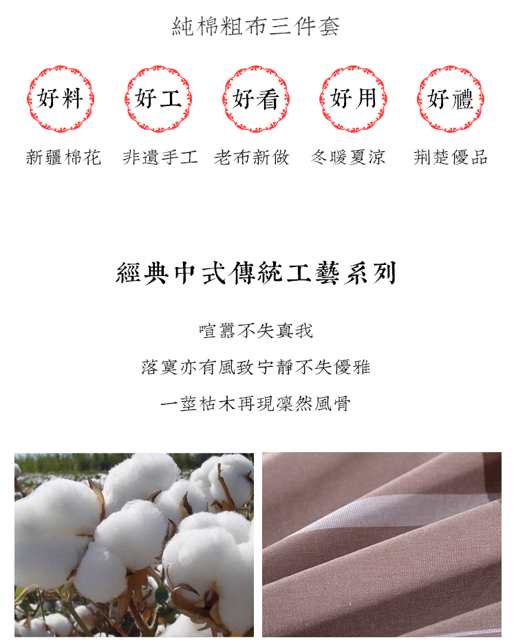 (乡村振兴商品)百布堂纯棉粗布三件套(驼色) 商品图4