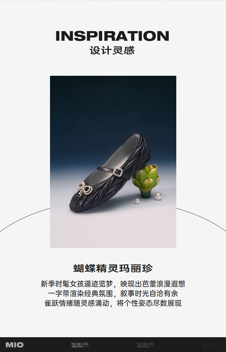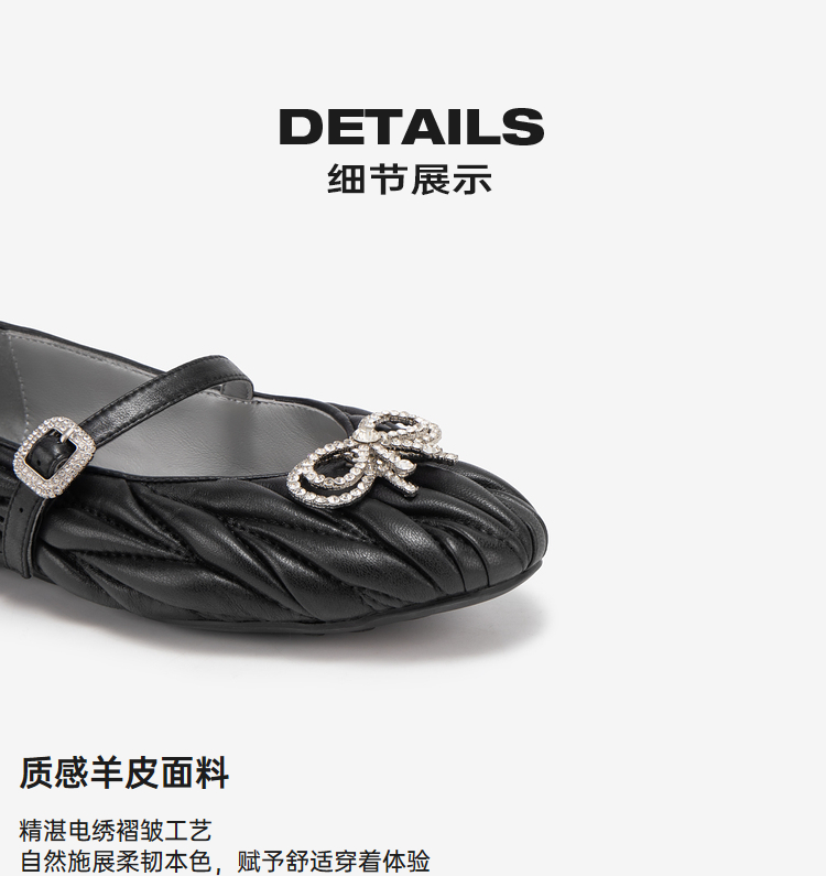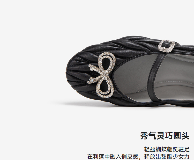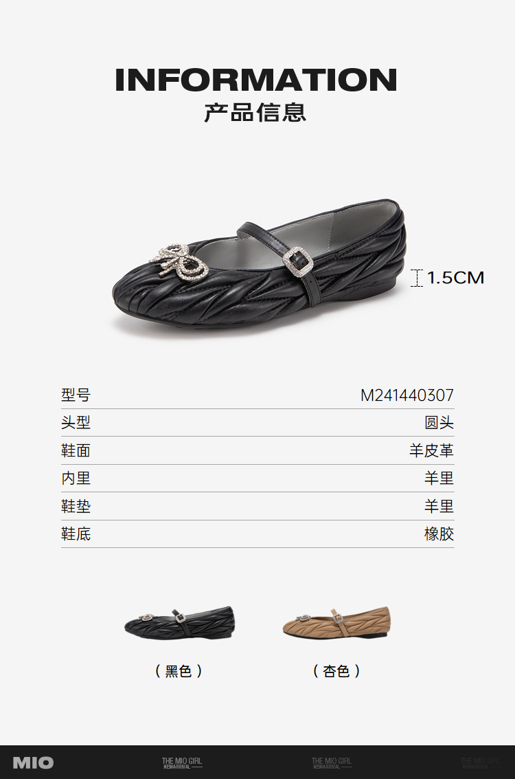 MIO米奥春季低跟羊皮革芭蕾舞鞋闪钻蝴蝶一字带玛丽珍鞋女M241440307