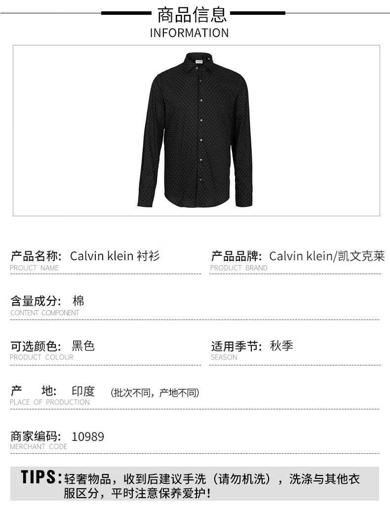【超惠秒】CK 卡文·克莱 男士印花全棉休闲长袖衬衣 10989