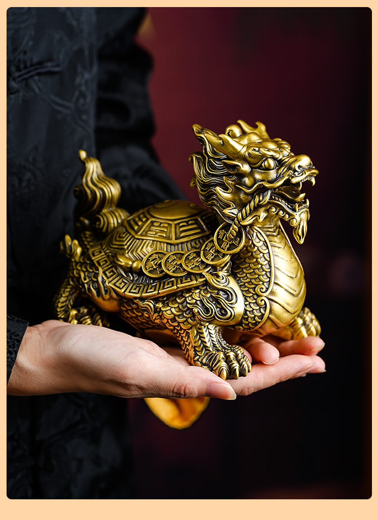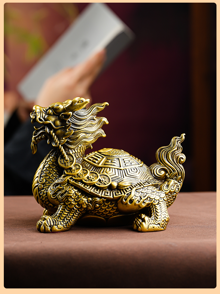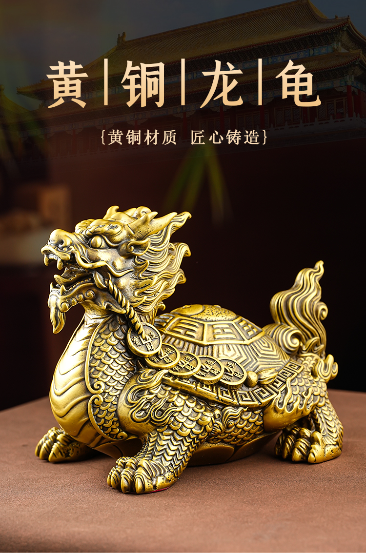 黄铜龙龟摆件复古工艺品家居玄关客厅书房吉祥物装饰品