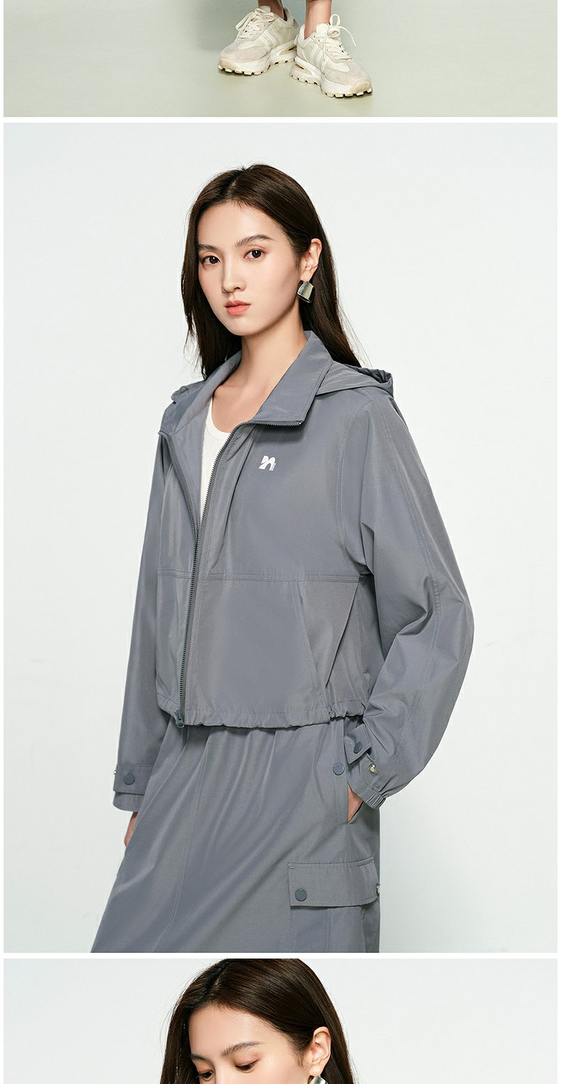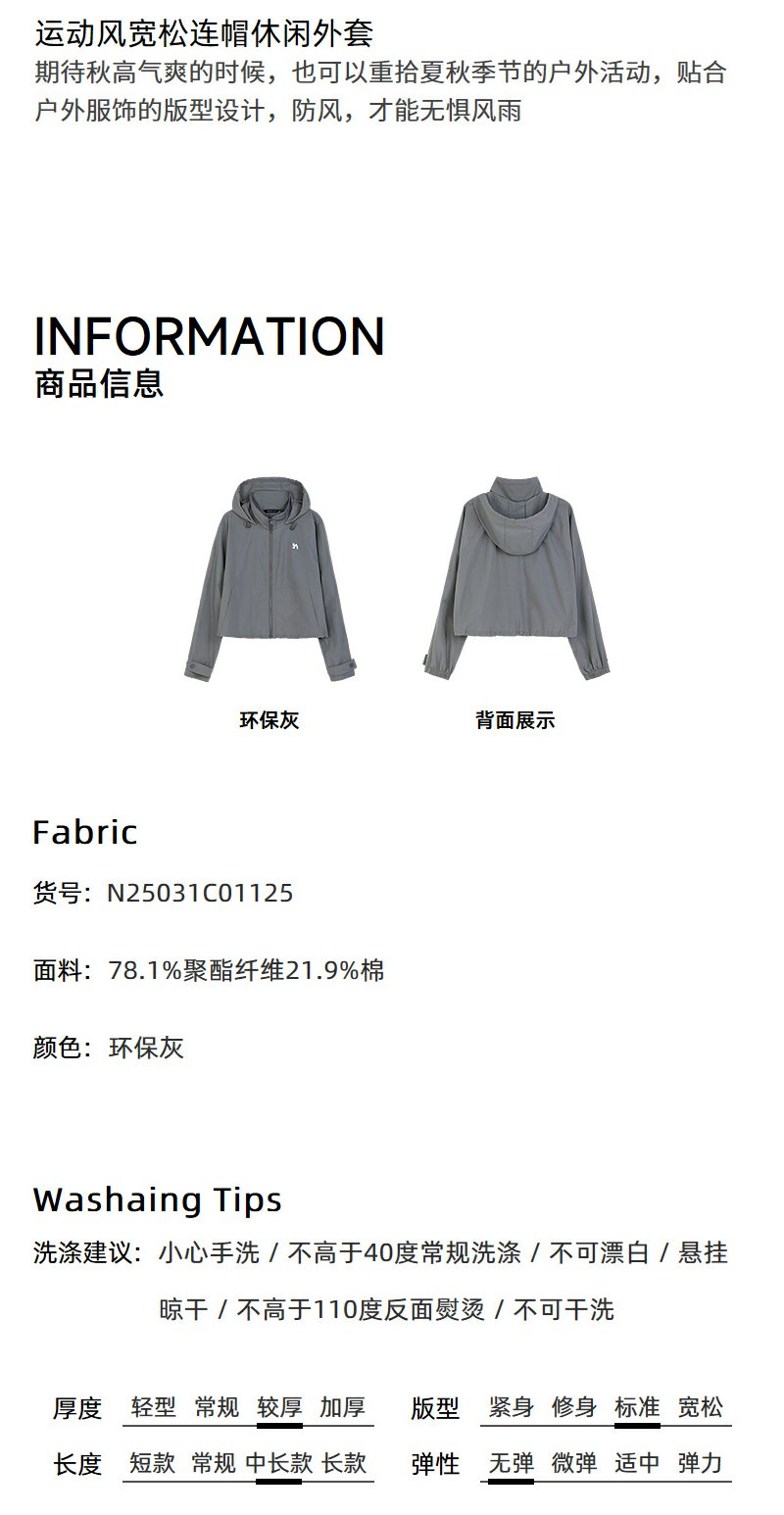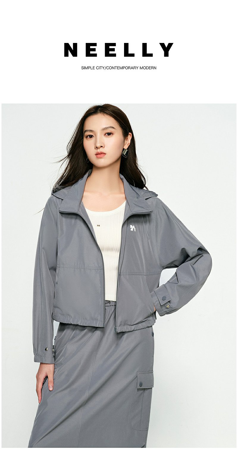 NEELLY纳俪商场同款春新款运动风宽松休闲短外套女连帽设计感上衣N25031C01125
