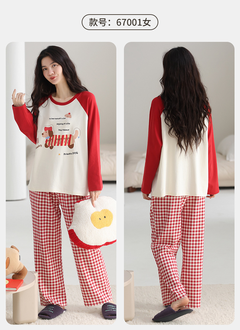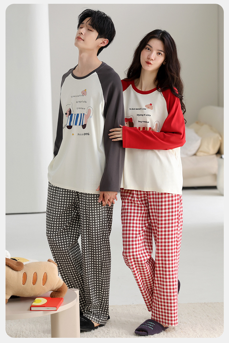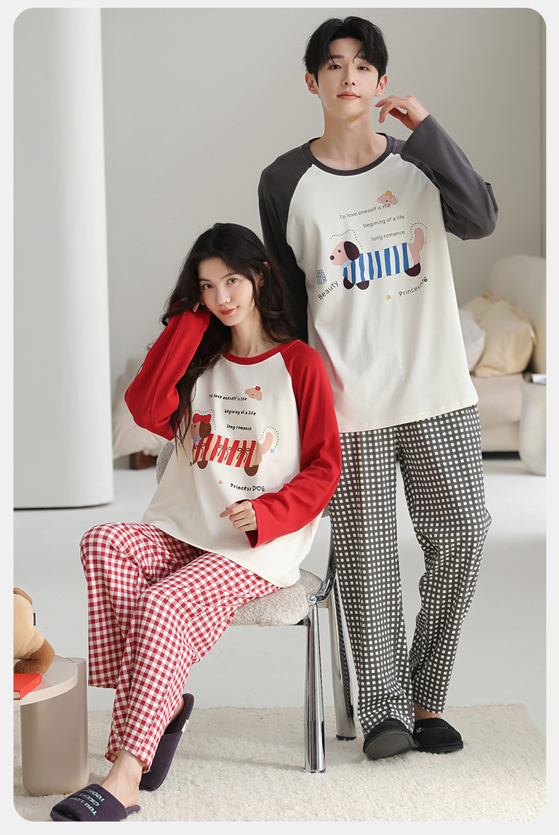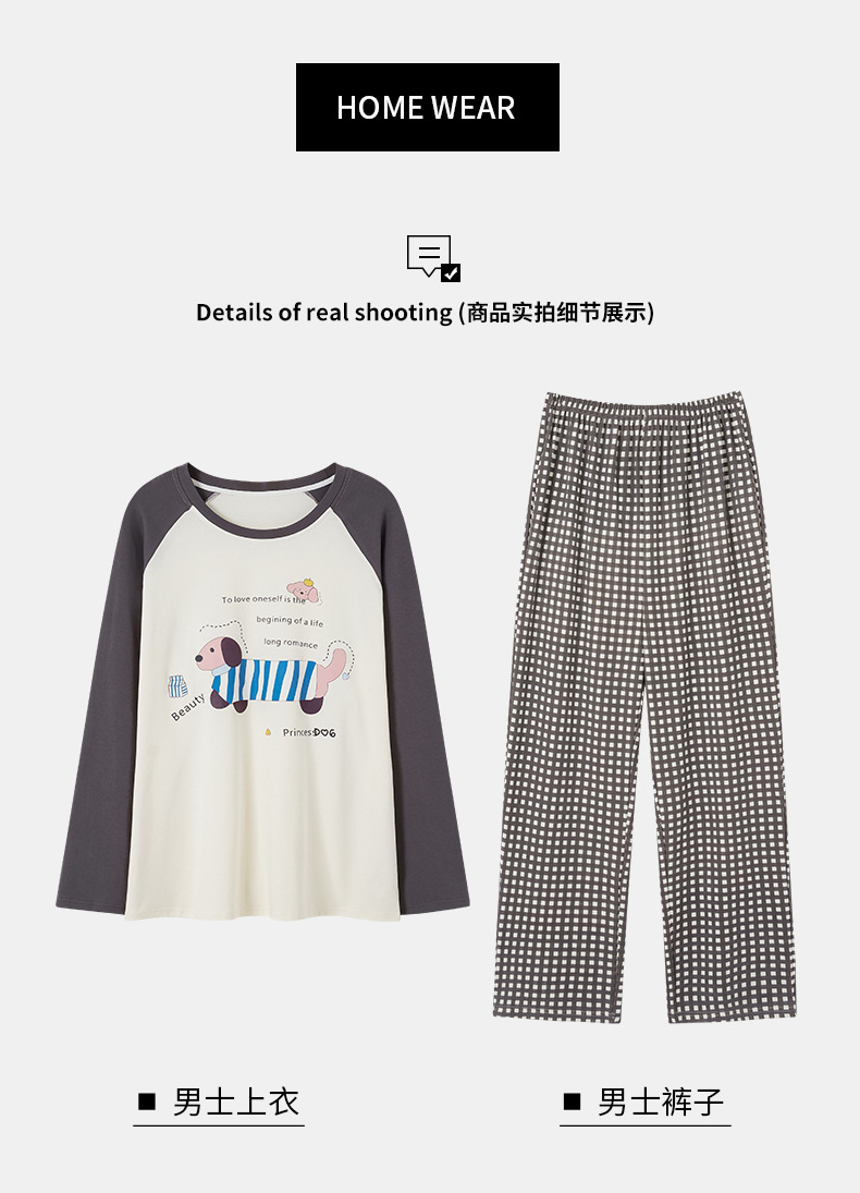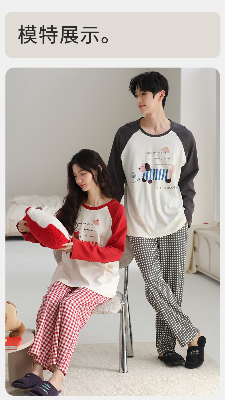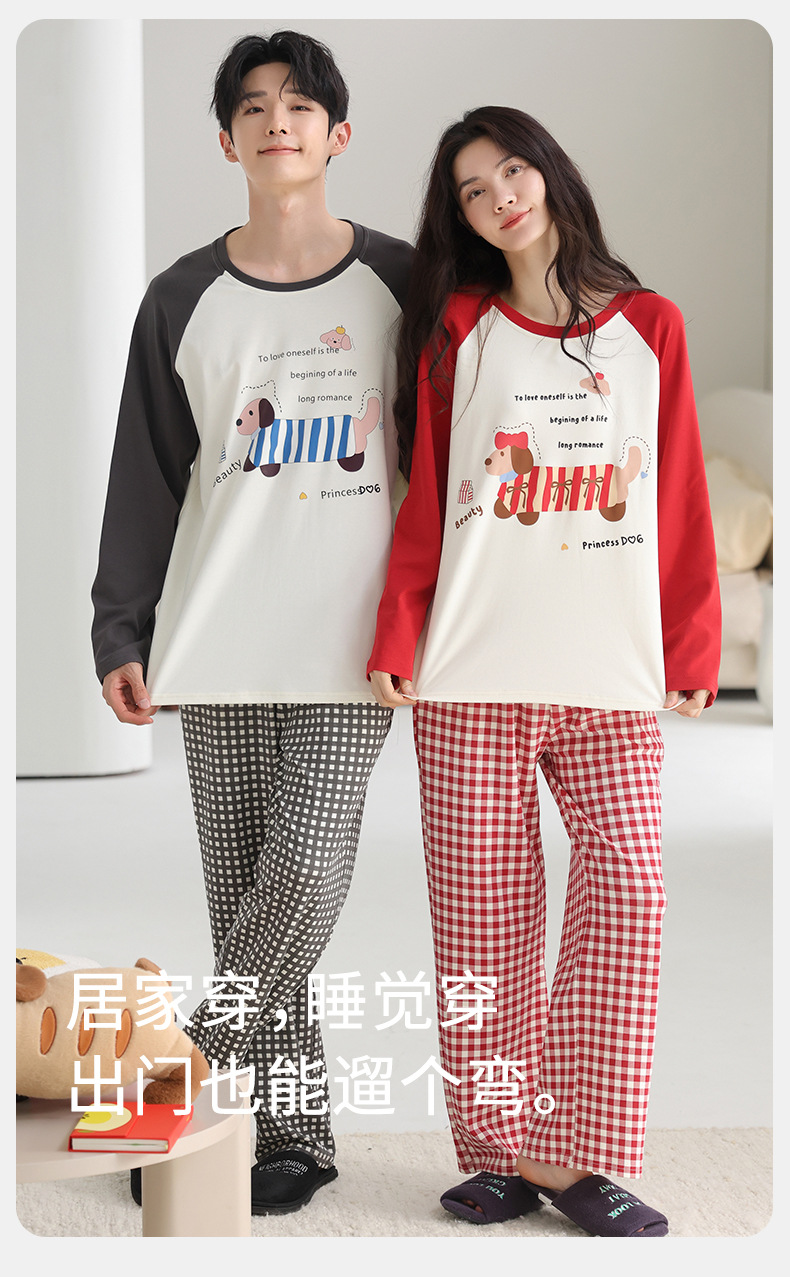 希燕茵卡通情侣睡衣秋季圆领套头长袖长裤家居服宽松休闲男女可外穿家居XY0020★