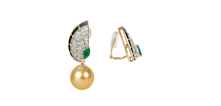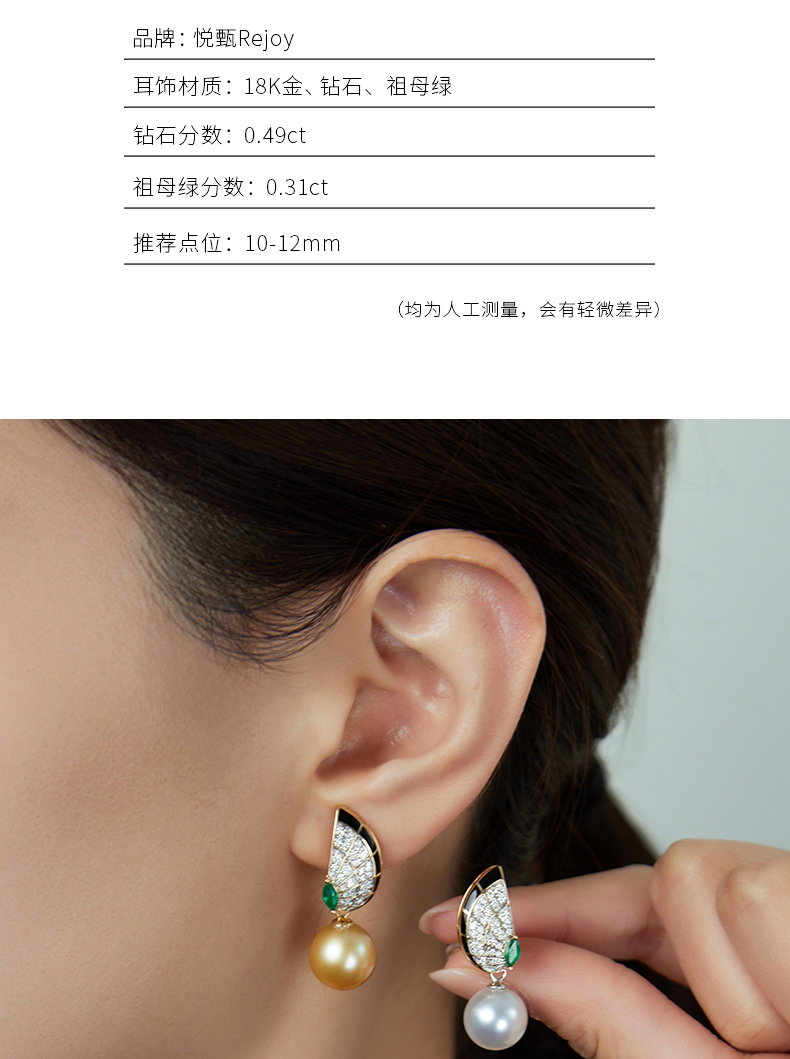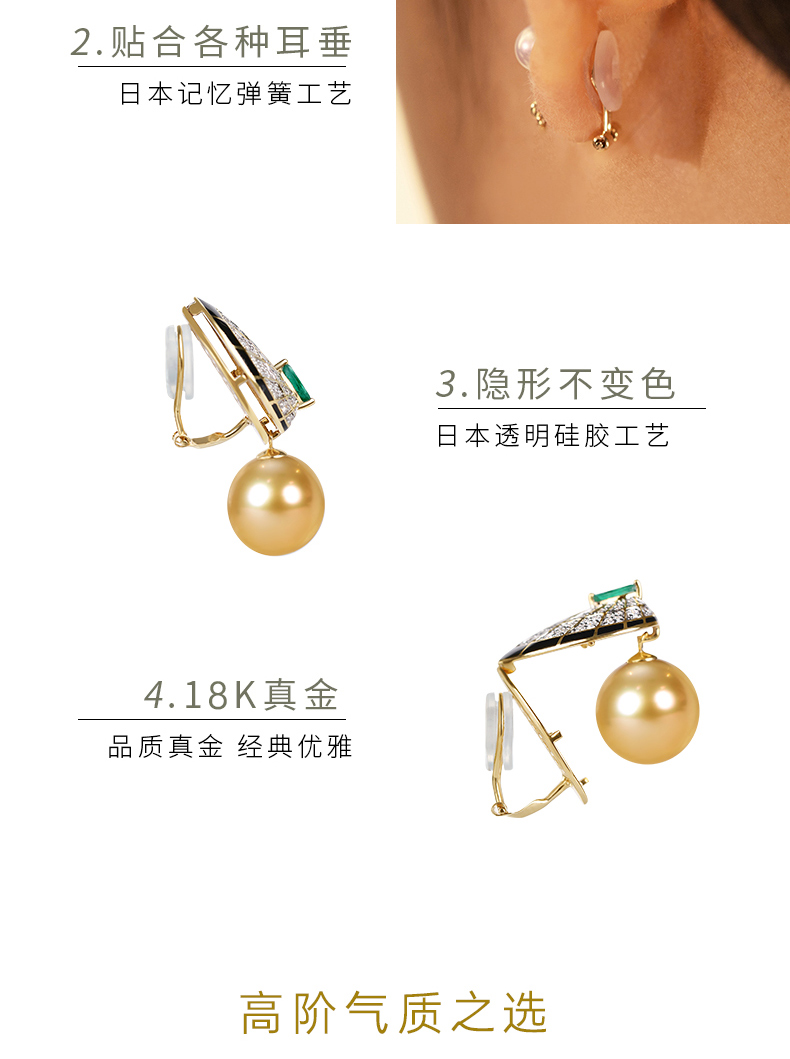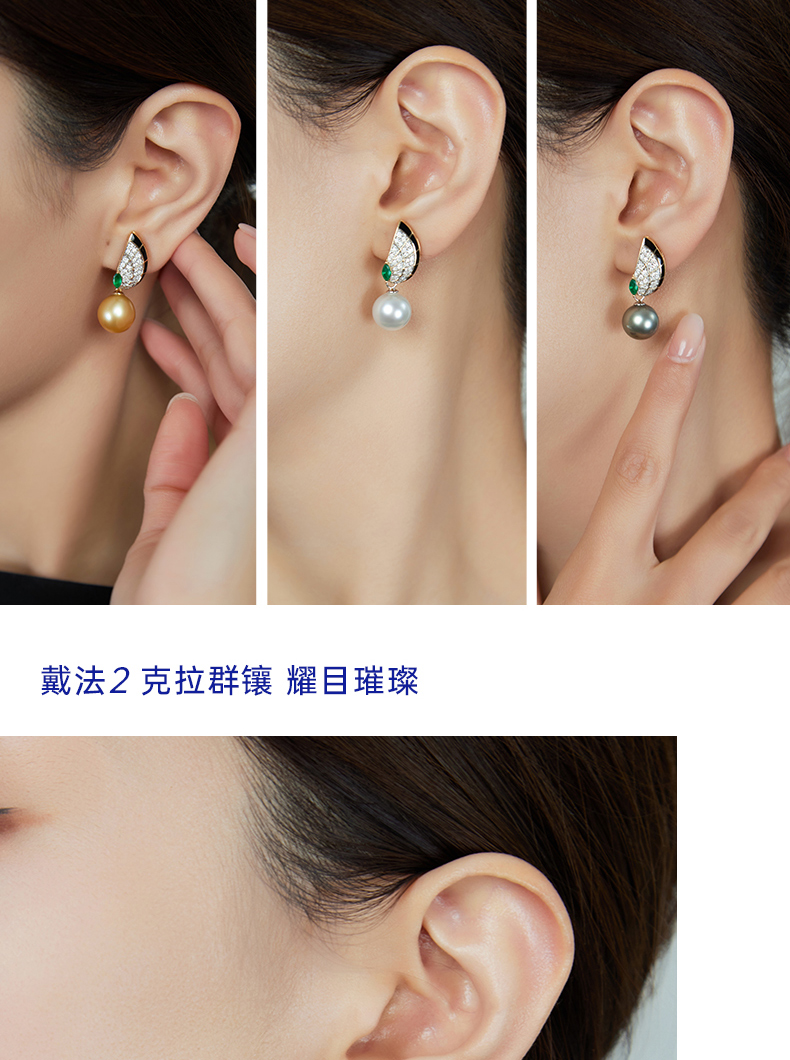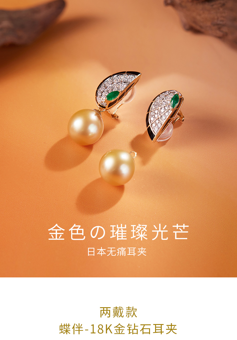 【挚友限定】18K金两戴款钻石祖母绿珍珠耳夹 蝶伴