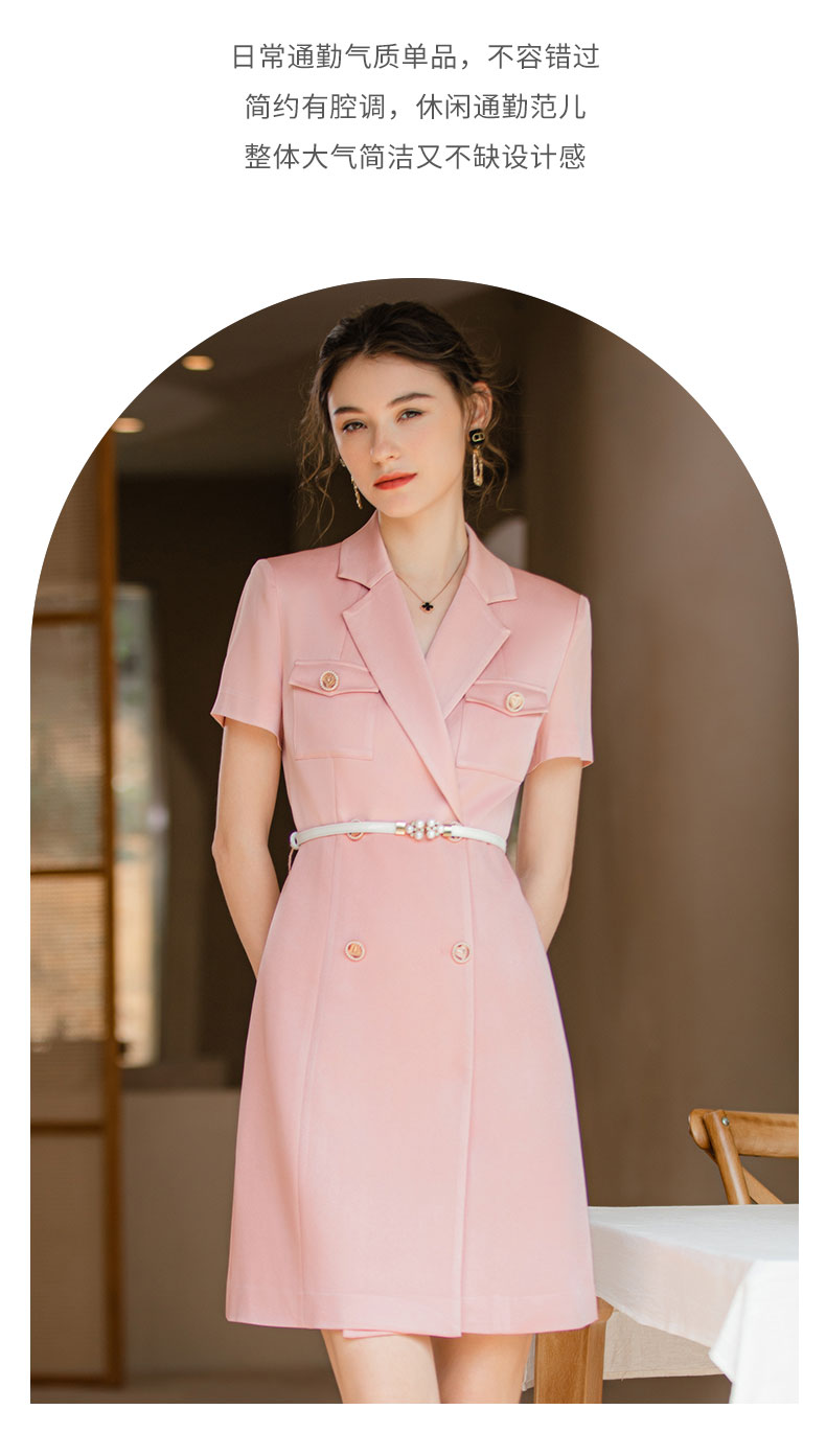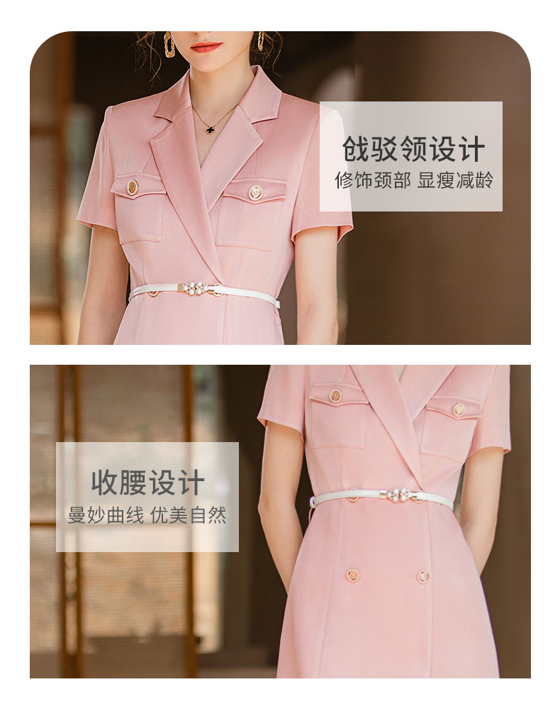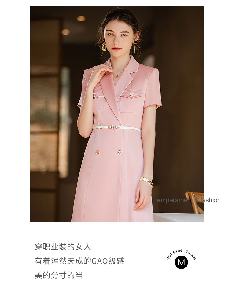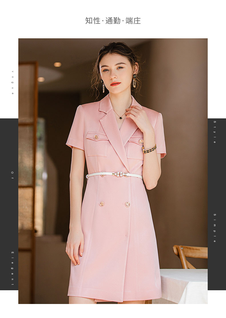 IWY/夏季新款粉色职业西装连衣裙女名媛气质腰带修身办公室OL正装Q905