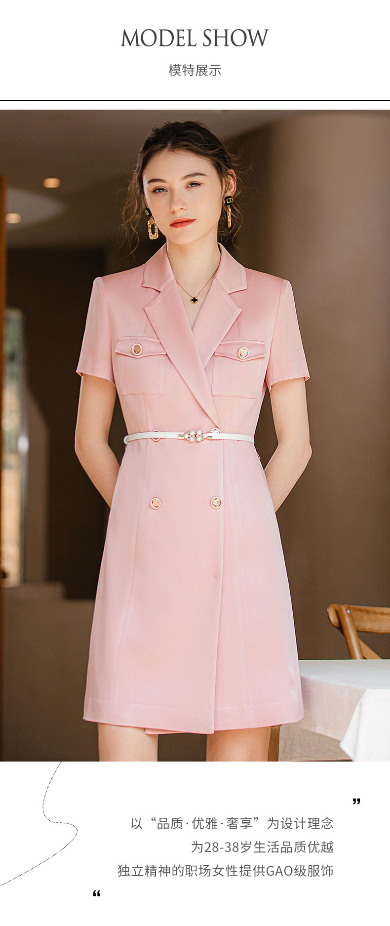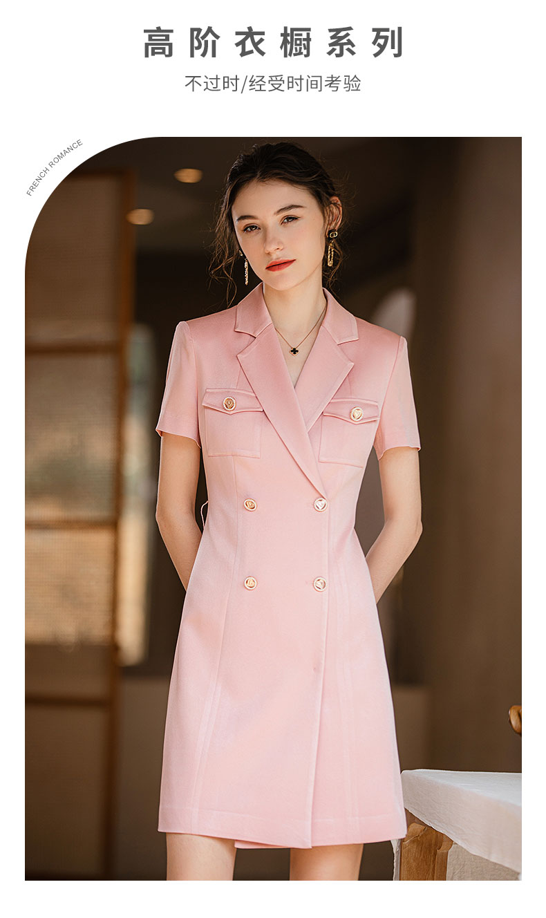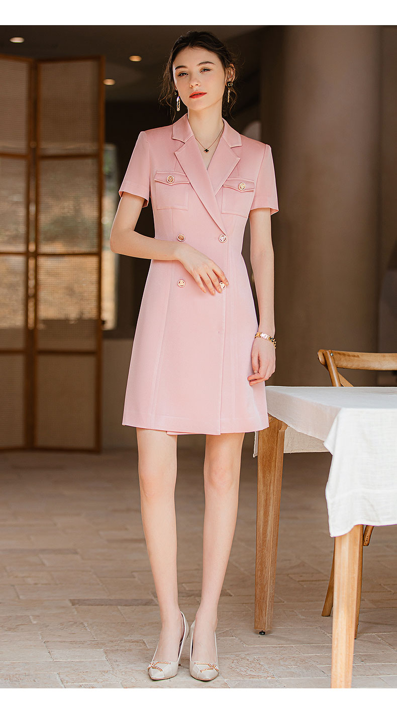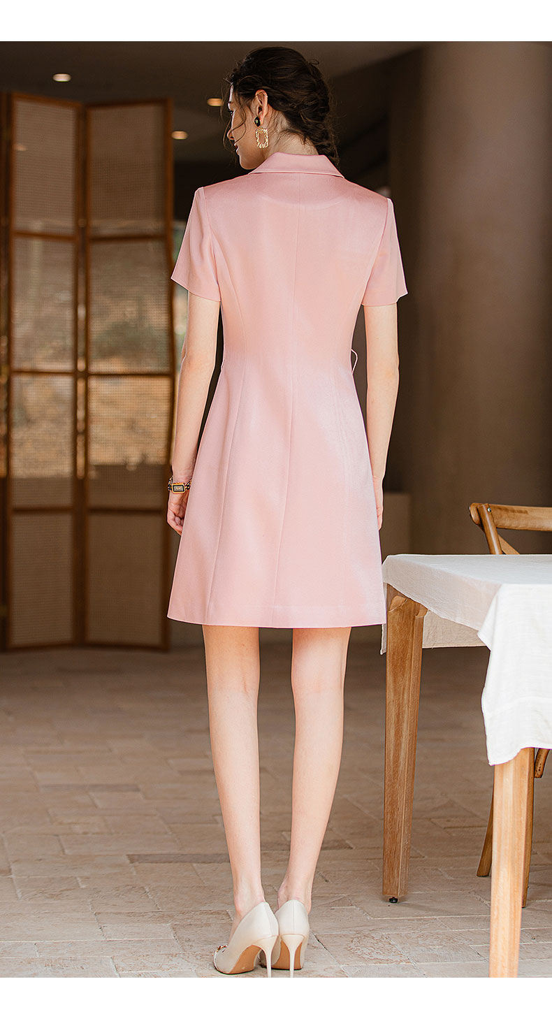 IWY/夏季新款粉色职业西装连衣裙女名媛气质腰带修身办公室OL正装Q905