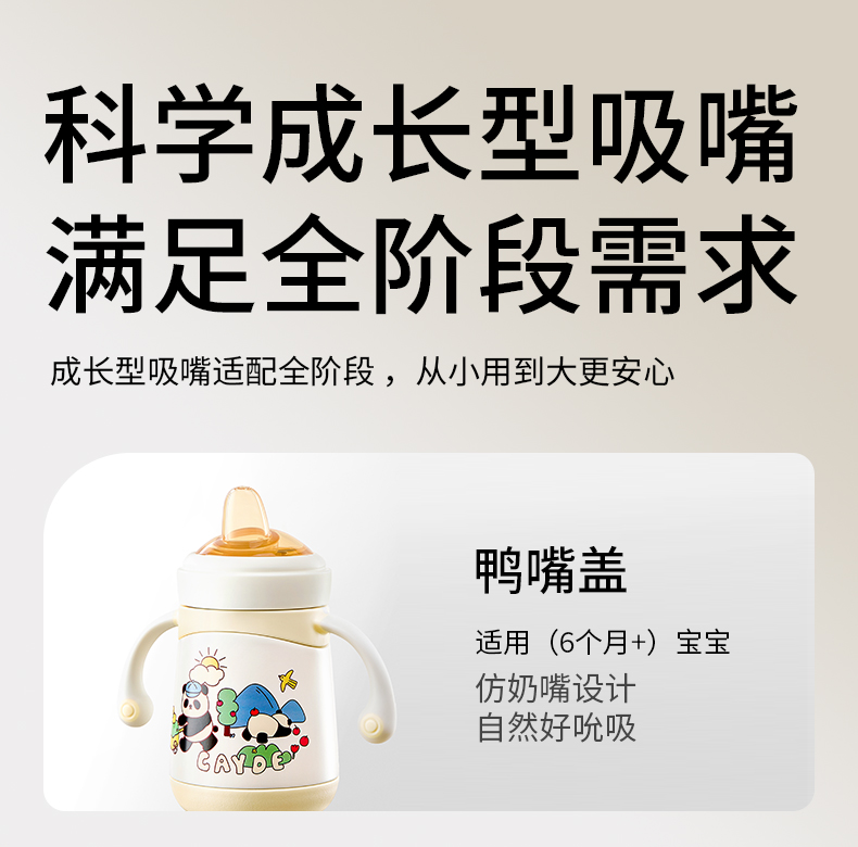 科巢婴幼儿保温杯儿童学饮小月龄宝宝鸭嘴杯外出吸管杯奶瓶防喷呛