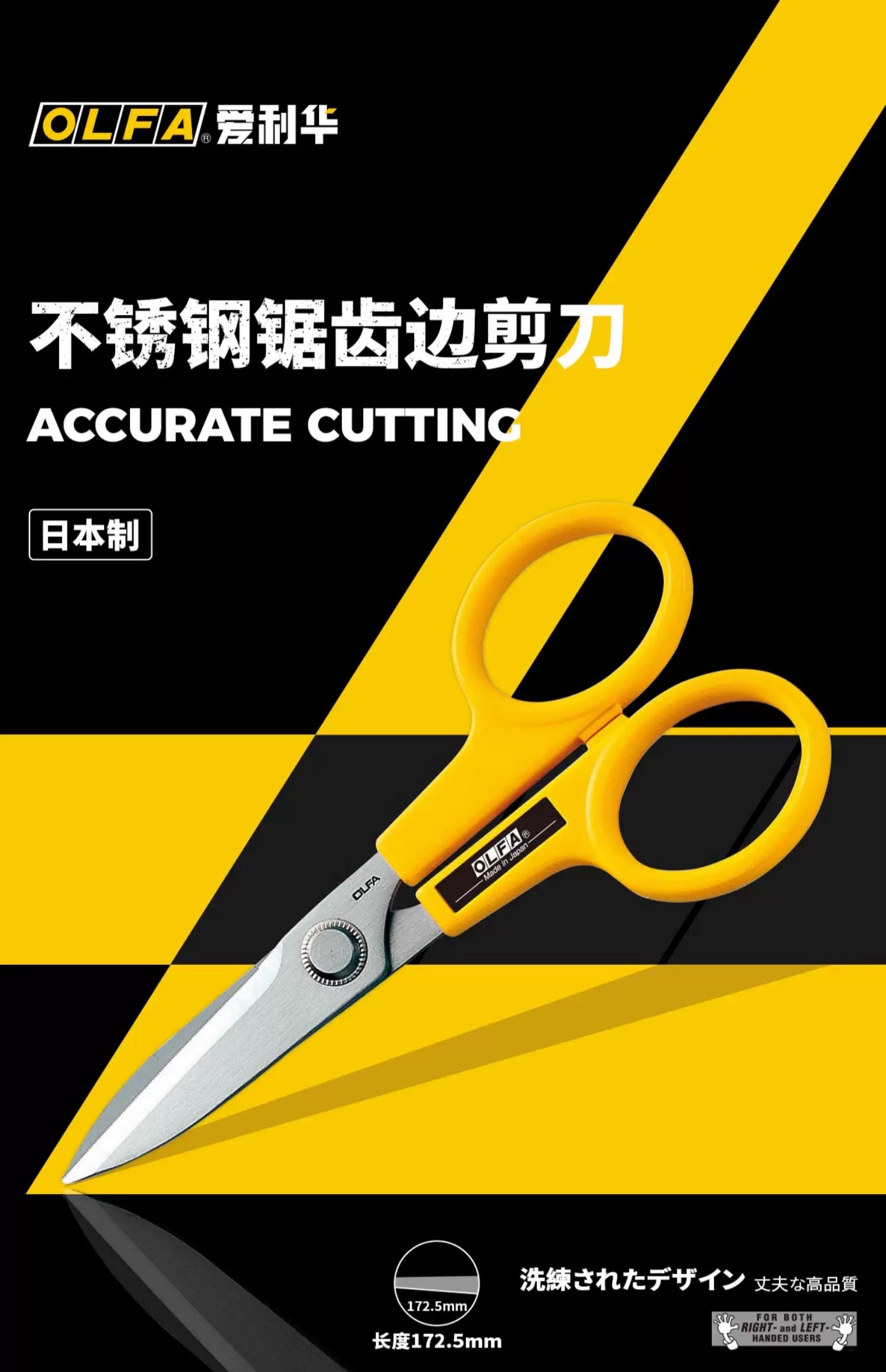 日本爱利华OLFA防滑多用功能剪刀锯齿状刀片防滑