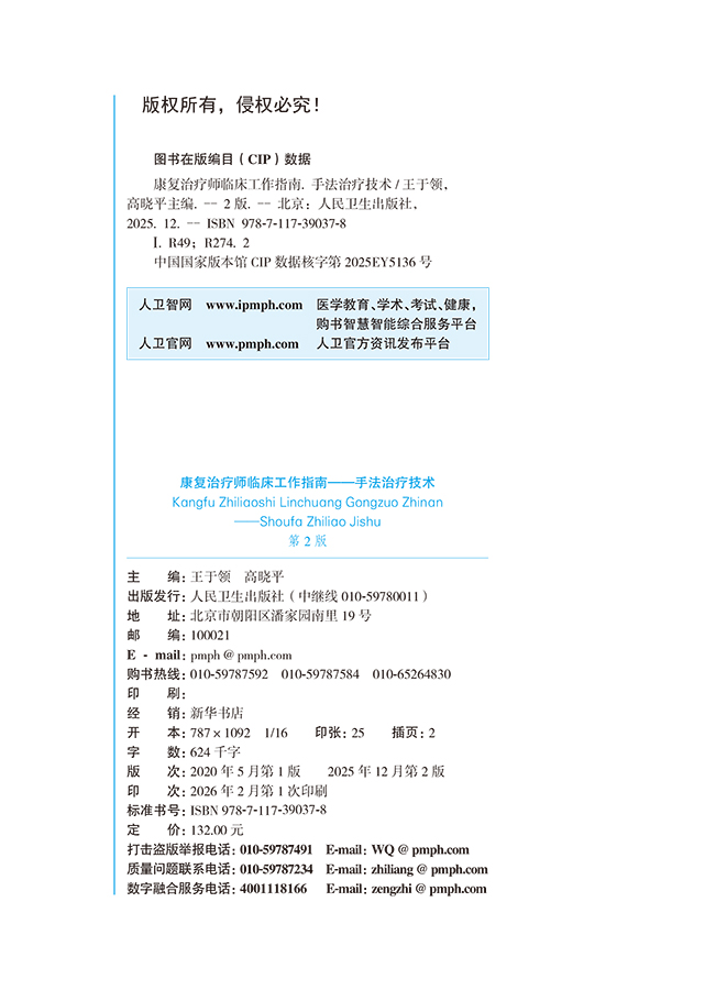 康复治疗师临床工作指南 手法治疗技术 第2二版 王于领 高晓平 主编 参考书 西医 医药 卫生 9787117390378 人民卫生出版社