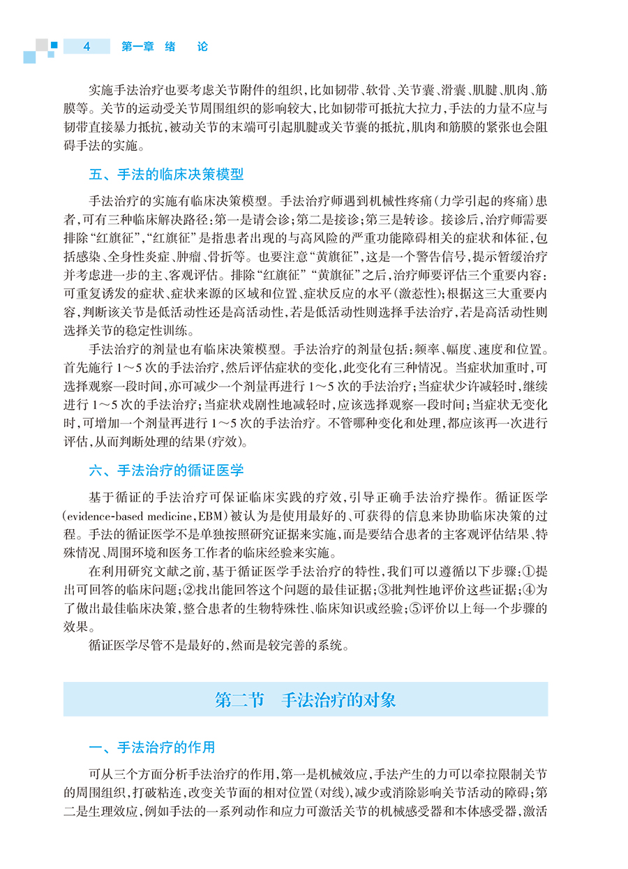 全书分总论和各论。总论主要包括手法的基本概念、对象、演变与历史,手法的解剖、生理与运动生物力学基础,手法分类与分级,手法治疗的注意事项。各论主要包括手法在各类疾病中的临床应用,包括颈椎疾病、颞下颌关节疾病、胸椎疾病、腰椎疾病、骨盆与骶髂关节疾病、肩关节疾病、肘关节与前臂疾病、 腕关节与手疾病、 髋关节疾病、膝关节疾病、踝关节与足疾病、内脏功能障碍等。本书的**版将坚决按照套书修订的总体思想吸纳手法治疗技术**的康复实用技术,以突出实践操作以解决临床实际问题为导向撰写全书稿件。