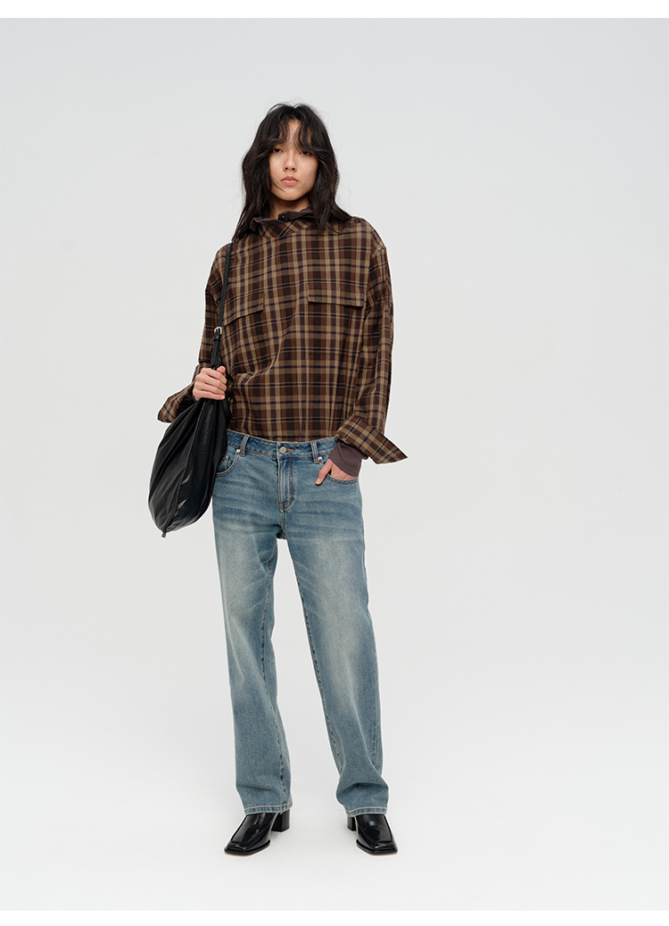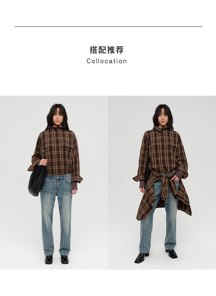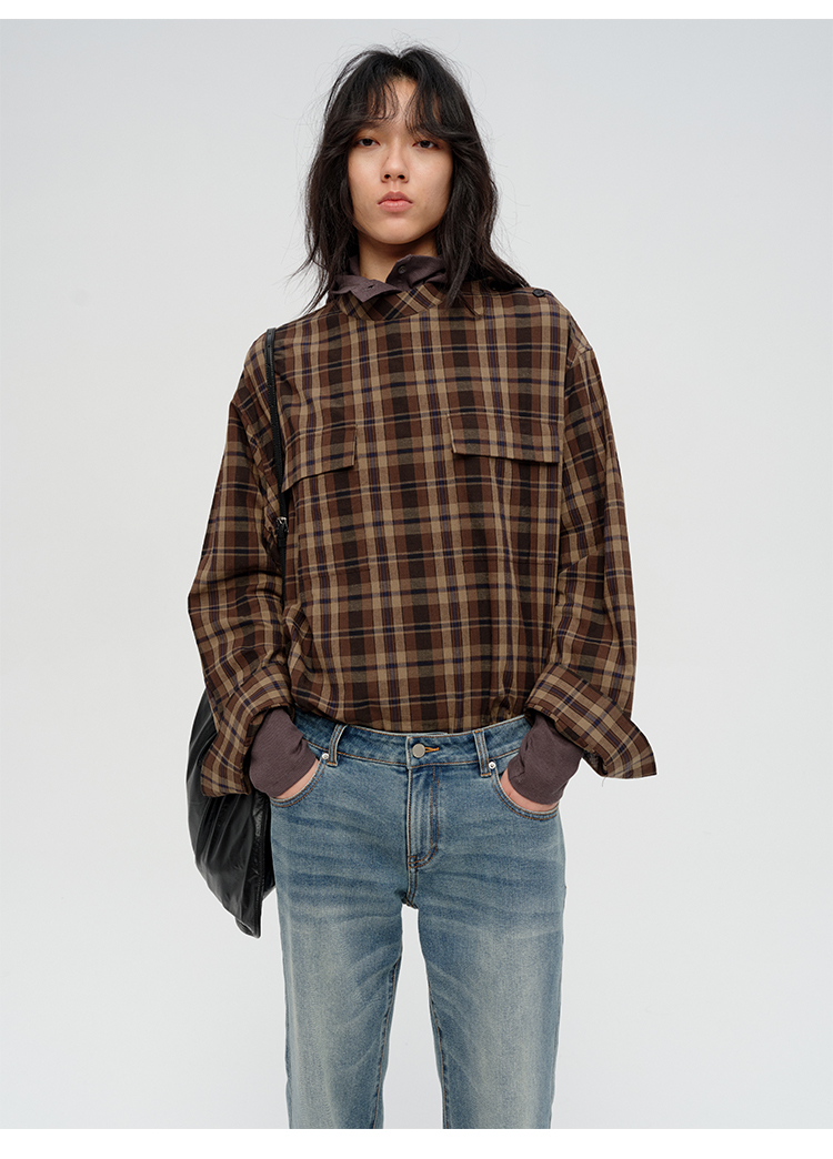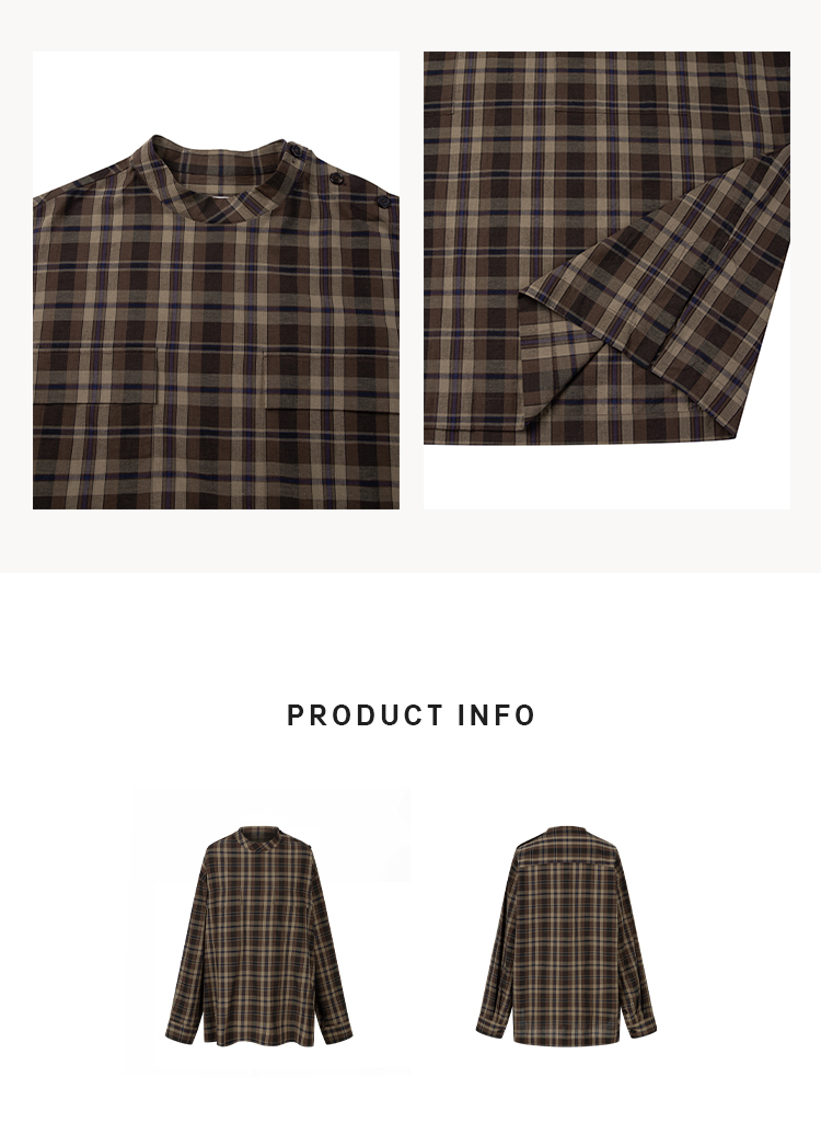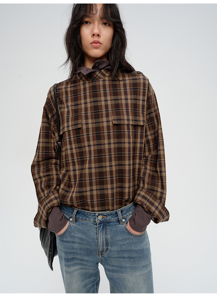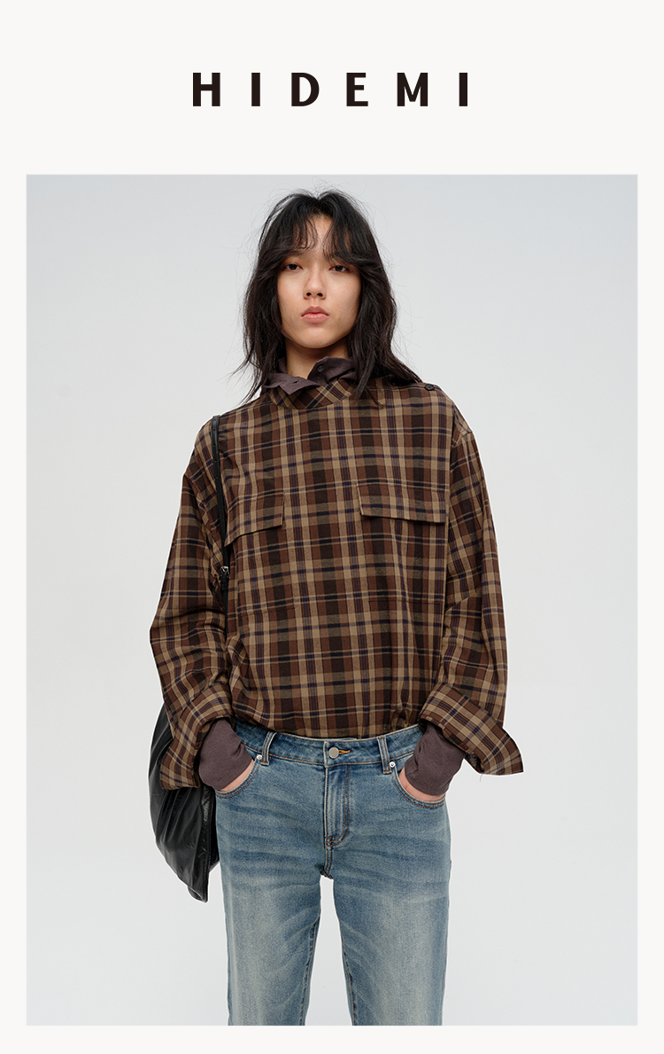 HIDEMI 限定色织格纹极简设计感口袋圆领宽松小男孩衬衫
