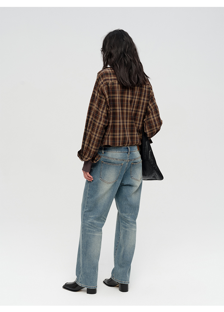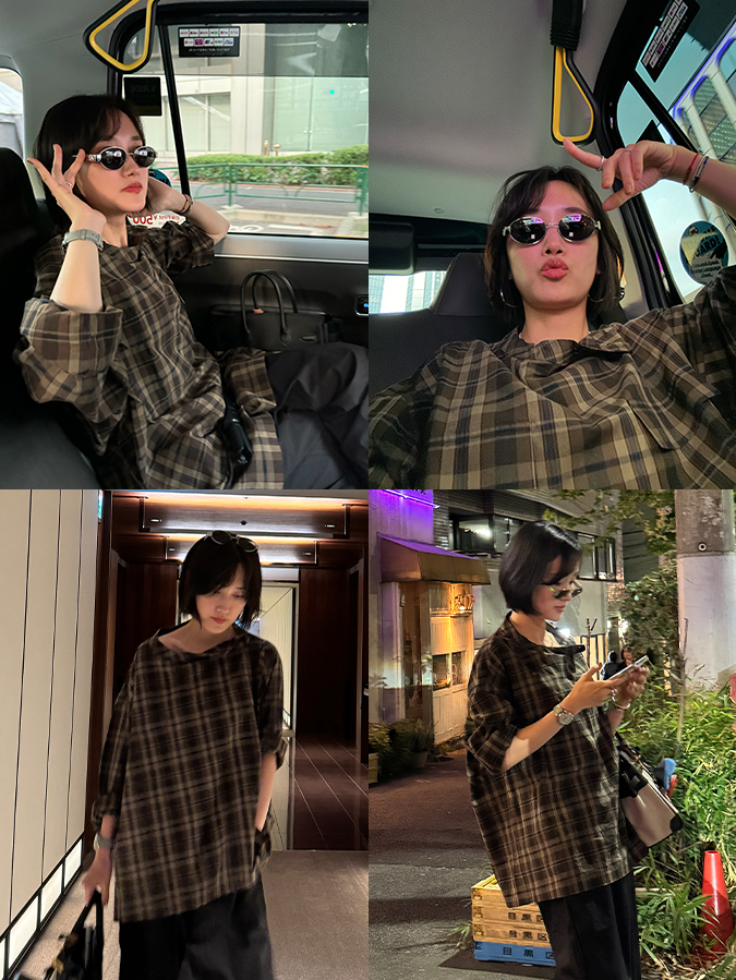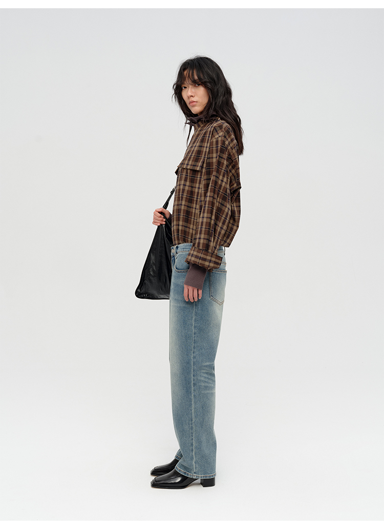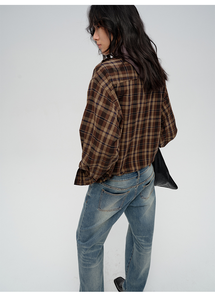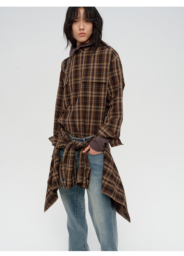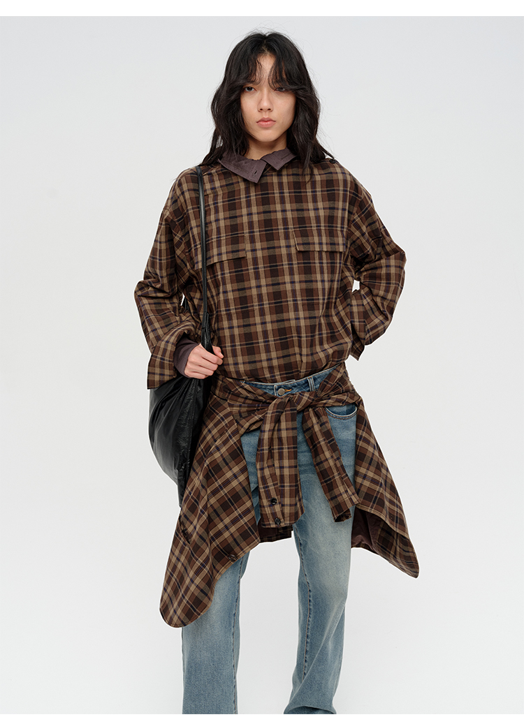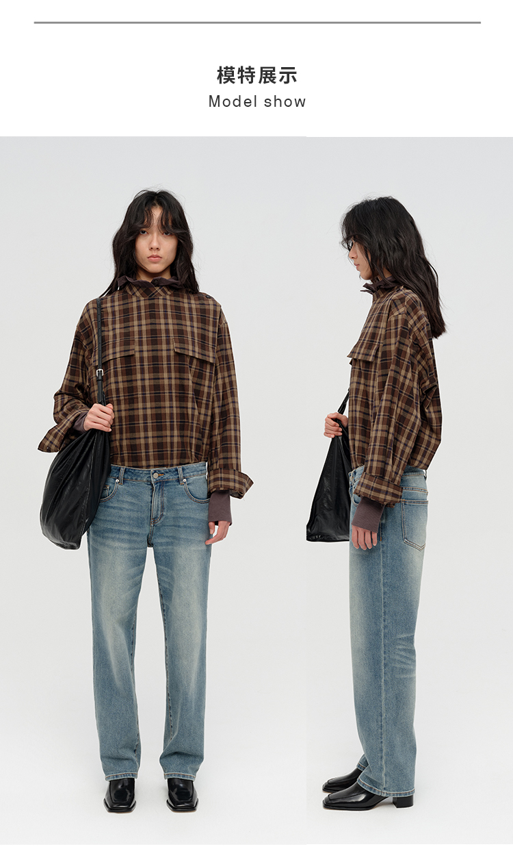 HIDEMI 限定色织格纹极简设计感口袋圆领宽松小男孩衬衫